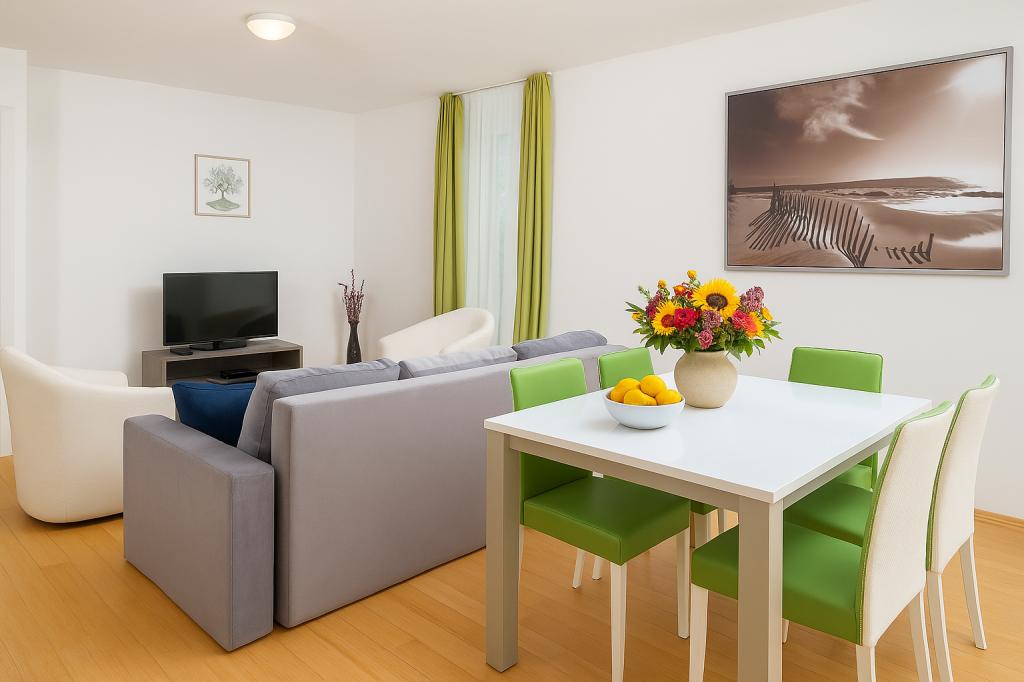 Apartma za štiri osebe, možnost dveh dodatnih ležišč (65 m2)
