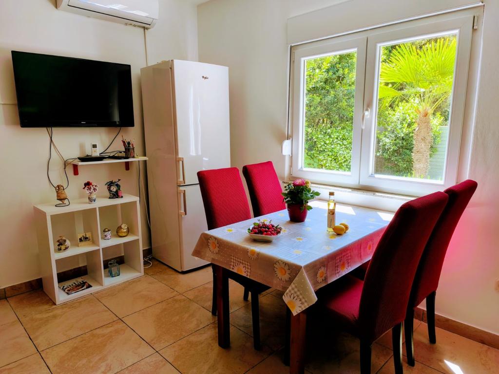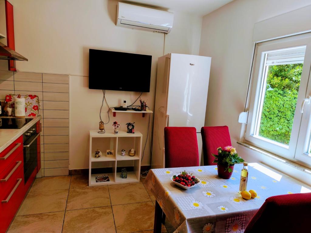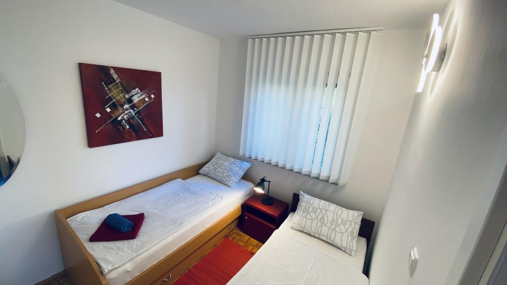 Popolnoma opremljeno stanovanje, urejeno in čisto. Slike na Apartmanija.hr v celoti ustrezajo dejanskemu stanju. Parkiranje pred apartmajem. Apartma se nahaja v mirni ulici brez prometa. Zbudimo se ob ptičjem petju. Urejena kamnita plaža je le nekaj korakov stran. Morje je kristalno čisto. Mestna peščena plaža je oddaljena 2 minuti hoje. Gostitelj je zelo ustrežljiv, na voljo za informacije kadarkoli.