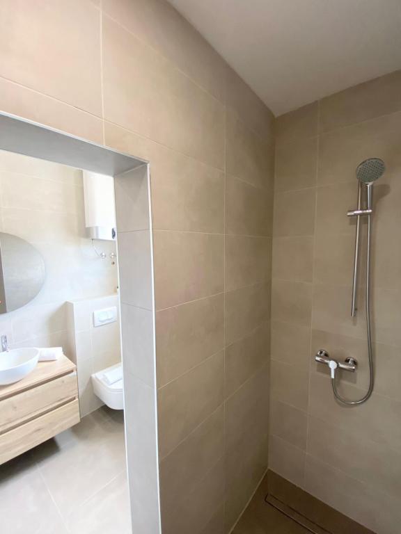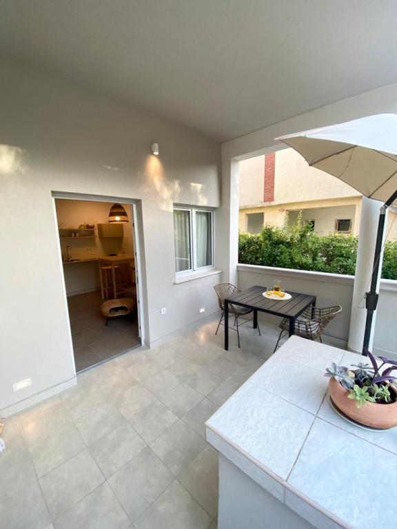 Apartma čist, moderen, velika terasa z neposrednim pogledom na morje. Res samo kratek sprehod do morja, cca 2-3 minute, do mesta največ 10 minut. Bili smo dve družini, zato sta bili 2 stanovanji drug poleg drugega v 2. nadstropju idealni. Če je bilo potrebno, so bili lastniki na voljo in vse je bilo takoj rešeno. Lahko samo priporočam, prijetno preživet dopust