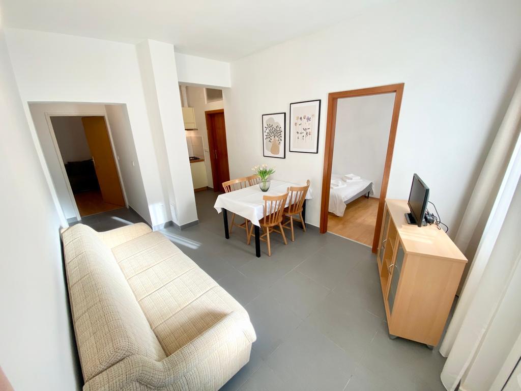 Preberite več Namestitvene enoteZa namen rezervacije se plača akontacija v višini 20% celotne cene nočitve. Preostanek plačate ob prihodu v apartma. Vstop v stanovanje od 15.00 ure (ali prej, če je na voljo), izstop do 10.00 ure. Število parkirnih mest na dvorišču hiše ustreza številu stanovanj. Storitev uporabe pralnega stroja v pralnici v hiši je na voljo za doplačilo.