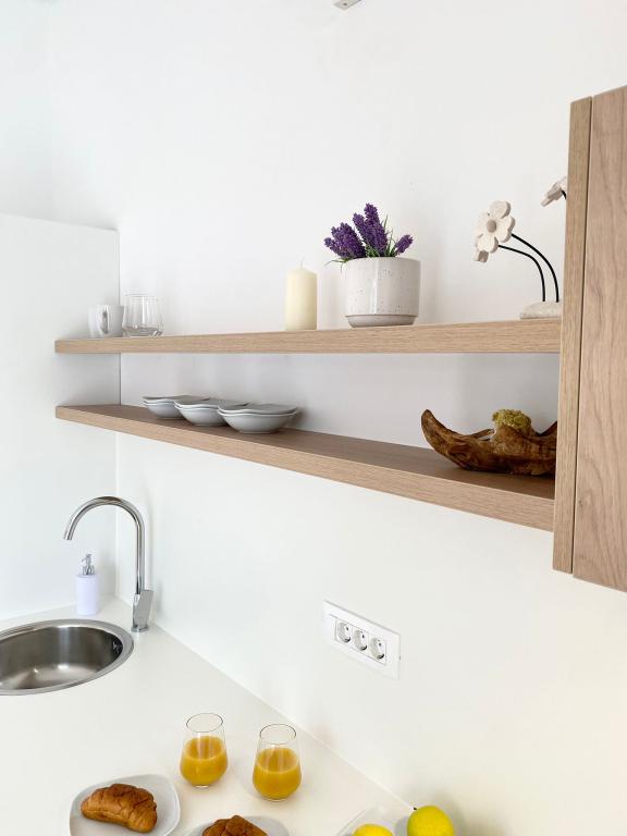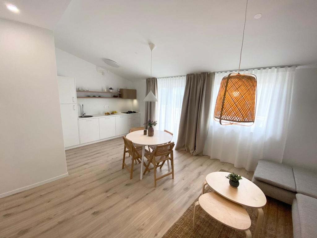 Na novo prenovljeni apartmaji, čeprav se nahajajo le nekaj minut hoje od plaže in centra mesta, borov gozd pred velikimi terasami zagotavlja mir, vonj po morju in zvok čričkov. Naravni in zračni materiali, prisotni v celotni notranjosti, prispevajo k pomirjujočemu ambientu. Preprostost prostora, les in pletiva naredijo prostor prijeten. Hkrati so apartmaji sodobno opremljeni, tako da gostu omogočajo popolno sprostitev in pravi počitek.