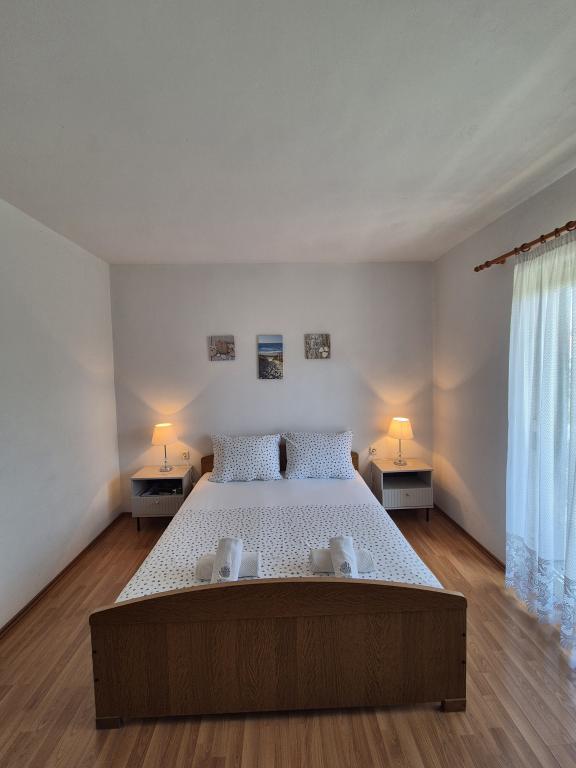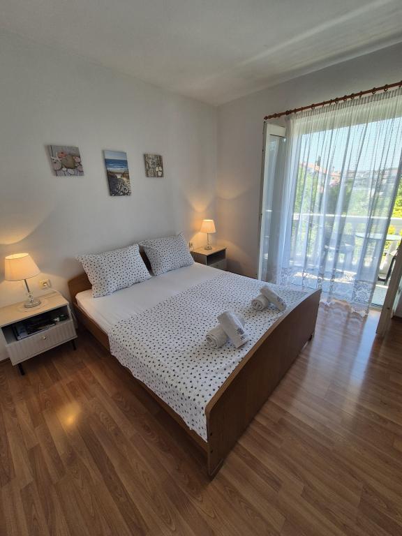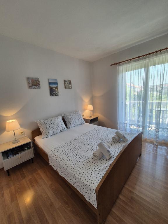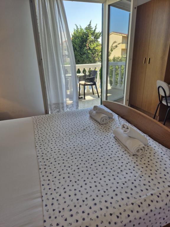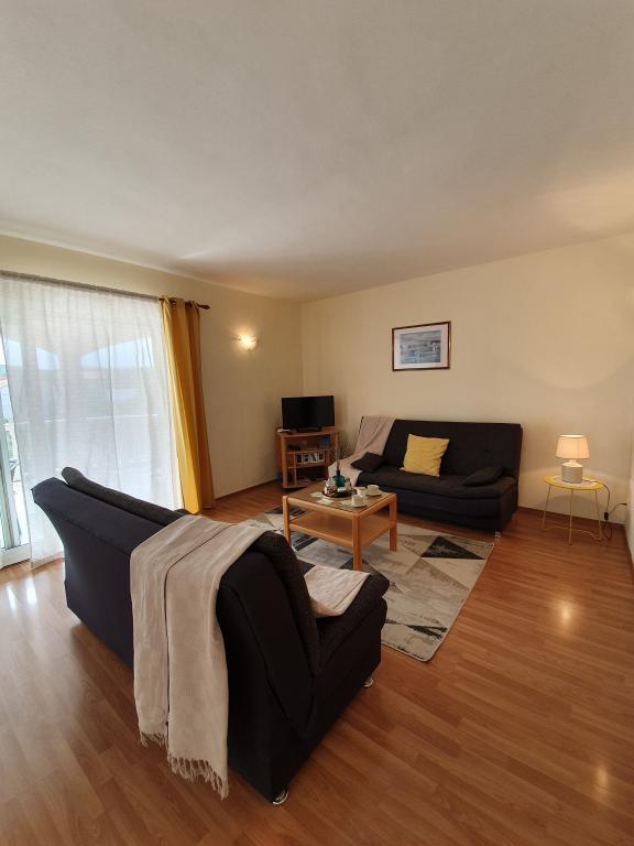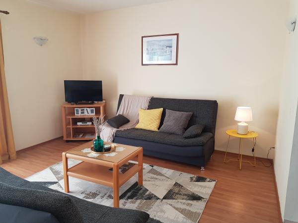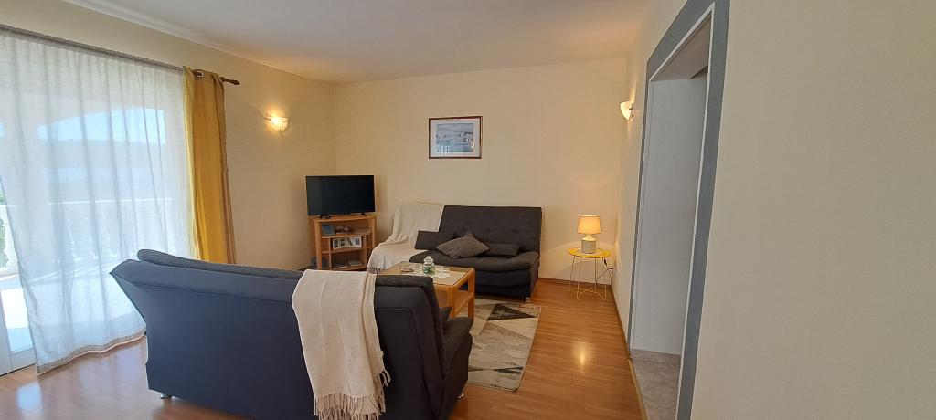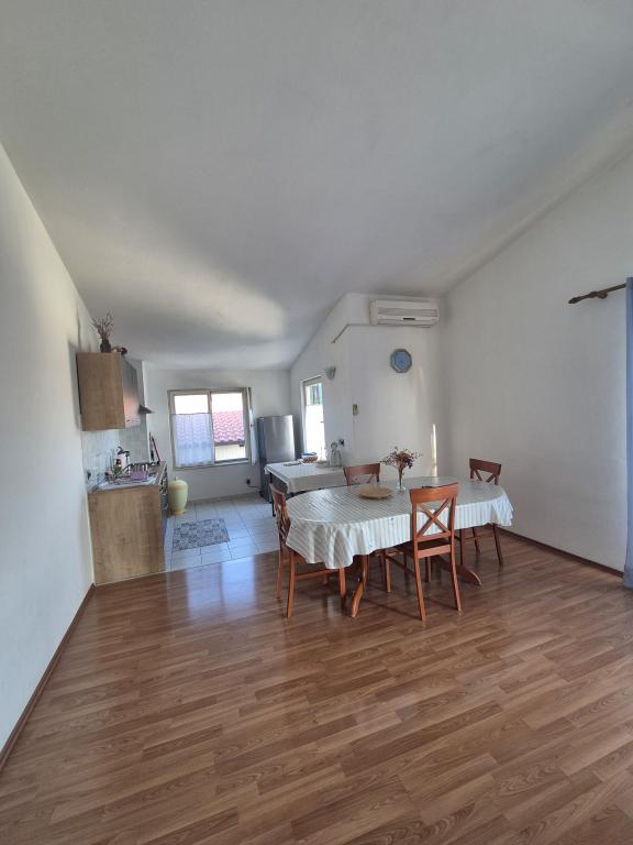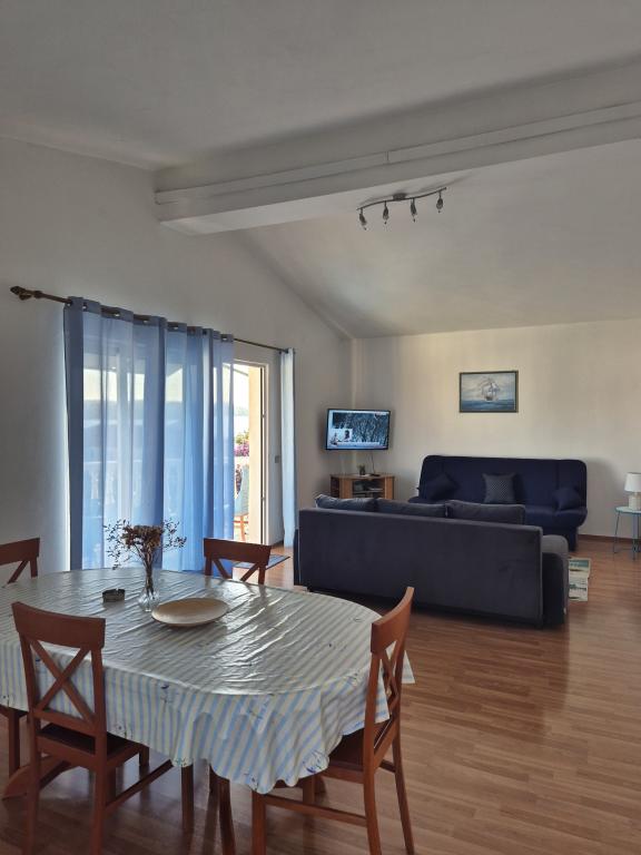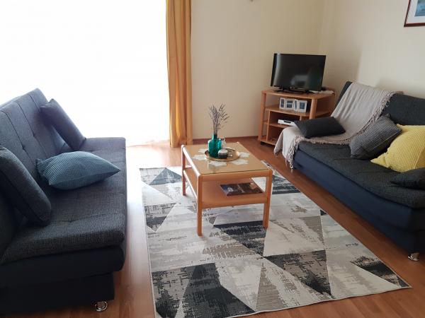Apartmaji Kristina so oddaljeni le 150–200 m od centra in plaže, so precej prostorni in ponujajo številne ugodnosti, da se gostje počutijo udobno in domače. Vsi trije apartmaji so popolnoma opremljeni s kuhinjo, dnevno sobo (vsi kavči so raztegljivi), klimatsko napravo in TV-jem (satelitski programi). Dva apartmaja po 90 m² (v 1. in 2. nadstropju) sta svetla, zračna, z 20 m² veliko teraso s pogledom na morje in dvema prostornima spalnicama, vsaka soba pa ima kopalnico in ventilator. Apartma po 40 m² ima 5 m² velik balkon. Na voljo je ena spalnica po 15 m² s kopalnico, klimatsko napravo in hladilnikom (na hodniku). Brezplačen brezžični internet je na voljo v celotnem objektu, na hodniku pri vhodu pa je majhna knjižnica (polica z brošurami, knjigami v več tujih jezikih, revijami). Pred hišo je veliko parkirišče. Za rezervacije, pogoje in drugo glejte Opombe. Koledar rezervacij se posodablja. Veselimo se vašega prihoda!