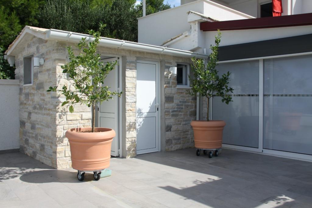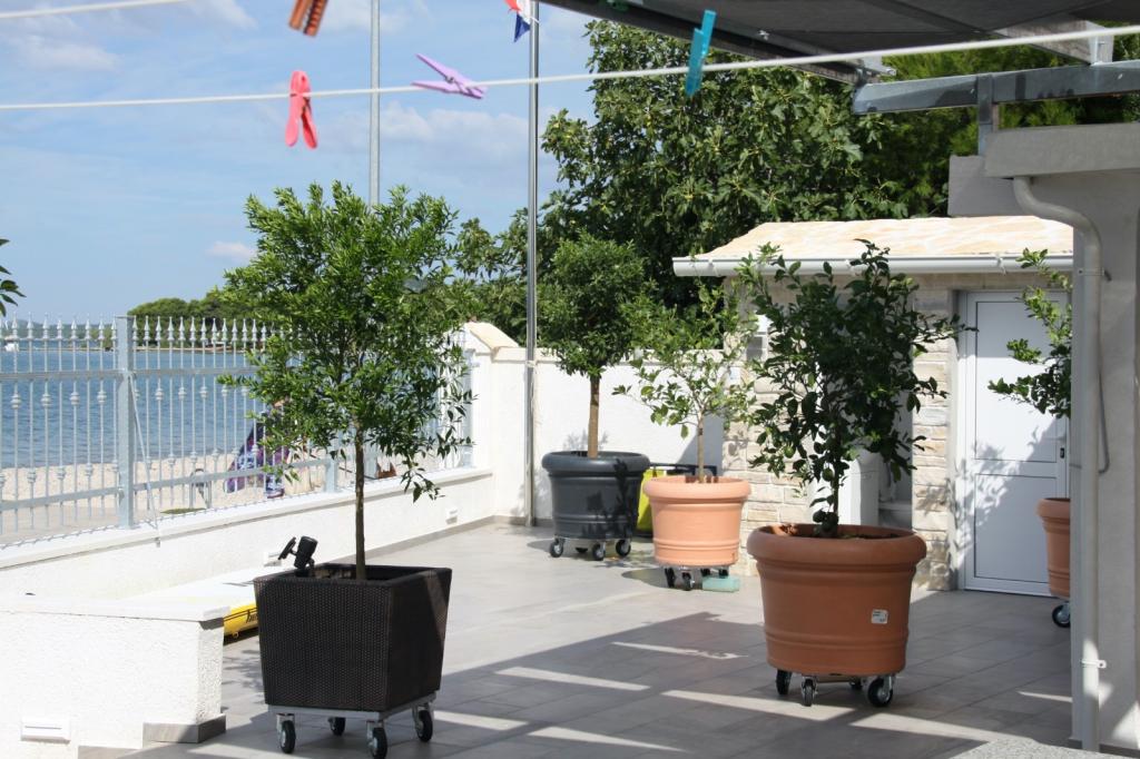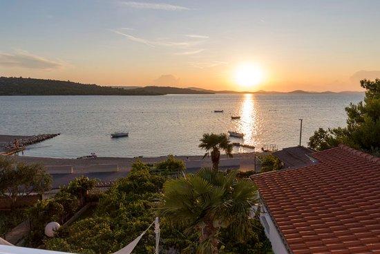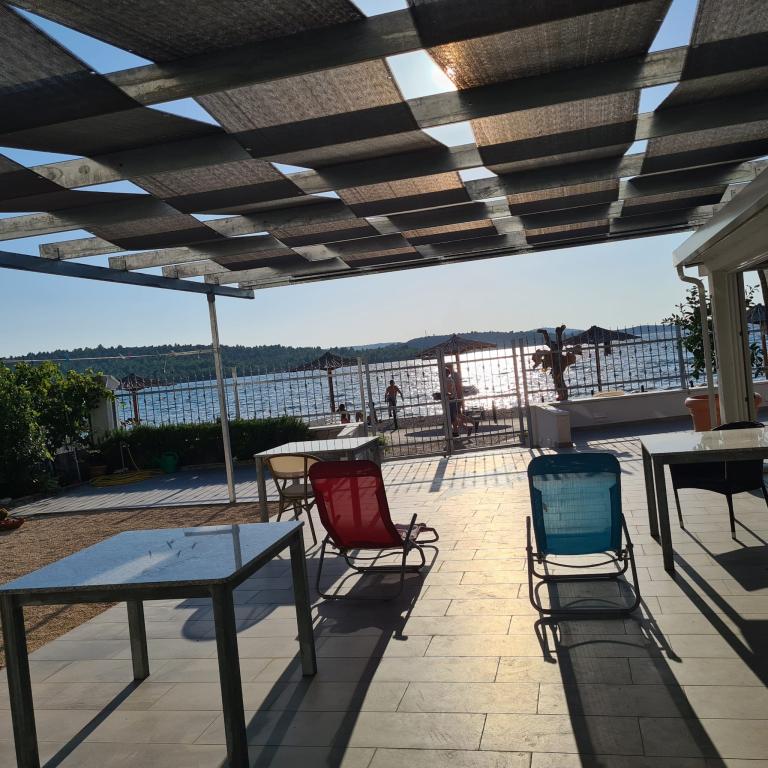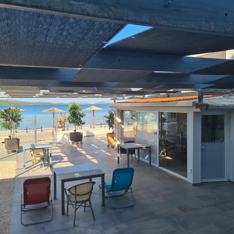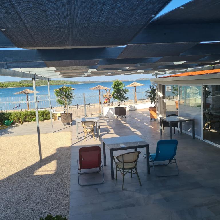 Družinska hiša v prvi vrsti do morja na glavni plaži v Pirovcu. Na voljo je 7 apartmajev, nekateri so s 4 in nekateri s 3 zvezdicami. Skoraj vsi apartmaji, z izjemo enega studio apartmaja, imajo pogled na morje in glavno plažo pred hišo. Terase so velike in prostorne, imajo strešne panele kot zaščito pred senco in zagotavljajo udobje uživanja v pogledu na morje in okoliške otoke. Na dvorišču za naše goste nudimo: ležalnike, plinski žar, tuš in WC za naše goste. Dvorišče je od lanskega leta na novo prenovljeno, urbani pridih s kamnom, ki izžareva harmonijo in čistost, umetnina - Roža vetrov na samem vhodu na dvorišče, diskretna kovana ograja, ki ponuja panoramski pogled na ta košček. raj. Vsi gostje ob odhodu prejmejo v dar 1L ekstra deviškega oljčnega olja, v apartmaju pa jih čakajo steklenica Studenega, steklenica 0,7 dcl ekstra deviškega oljčnega olja in 0,7 dcl domačega orehovca za pokušino in uživanje v času bivanja. letno. Ker letnik naj bo hedonizem, vse ostalo pa so zgodbe!