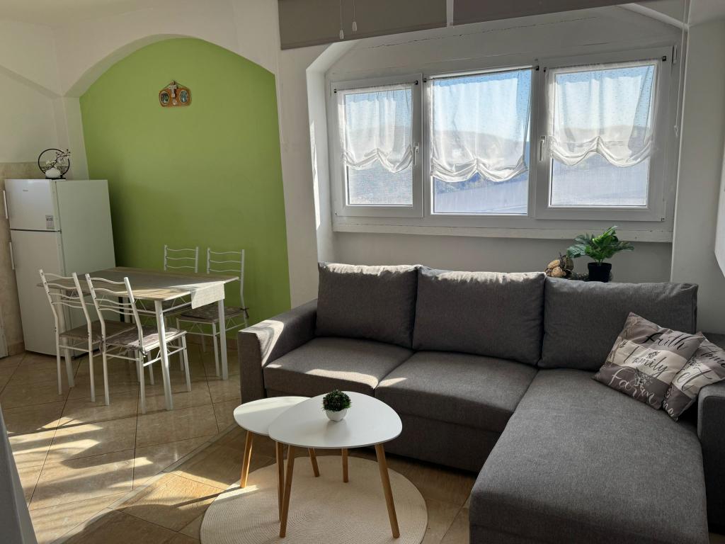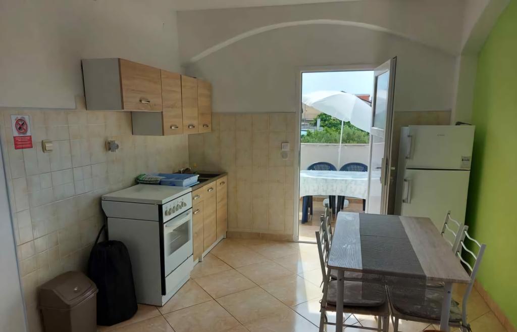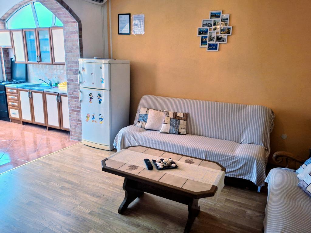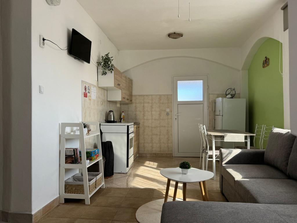 Apartmaji se nahajajo v pritličju in prvem nadstropju družinske hiše, ki se nahaja v mirni in prijetni soseski, idealni za sproščujoče počitnice. Gre za dvosobna, moderno opremljena in popolnoma opremljena apartmaja, ki ponujajo vse, kar potrebujete za prijetno bivanje. Gostom je na voljo brezplačen brezžični internet, klimatska naprava, Smart TV, varovano parkirišče in možnost uporabe žara. Plaža in središče mesta sta oddaljena le 300–400 metrov, zato avtomobil ni potreben. V neposredni bližini so trije večji supermarketi, pošta, klinika, lekarna in tržnica ter številne restavracije, pekarne in kavarne. V poletnih mesecih se v mestu vsak dan organizirajo različni dogodki ter zabavne in kulturne dejavnosti. V bližini apartmajev je tudi otroško igrišče, zaradi česar je namestitev še posebej primerna za družine z otroki.