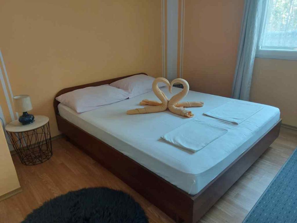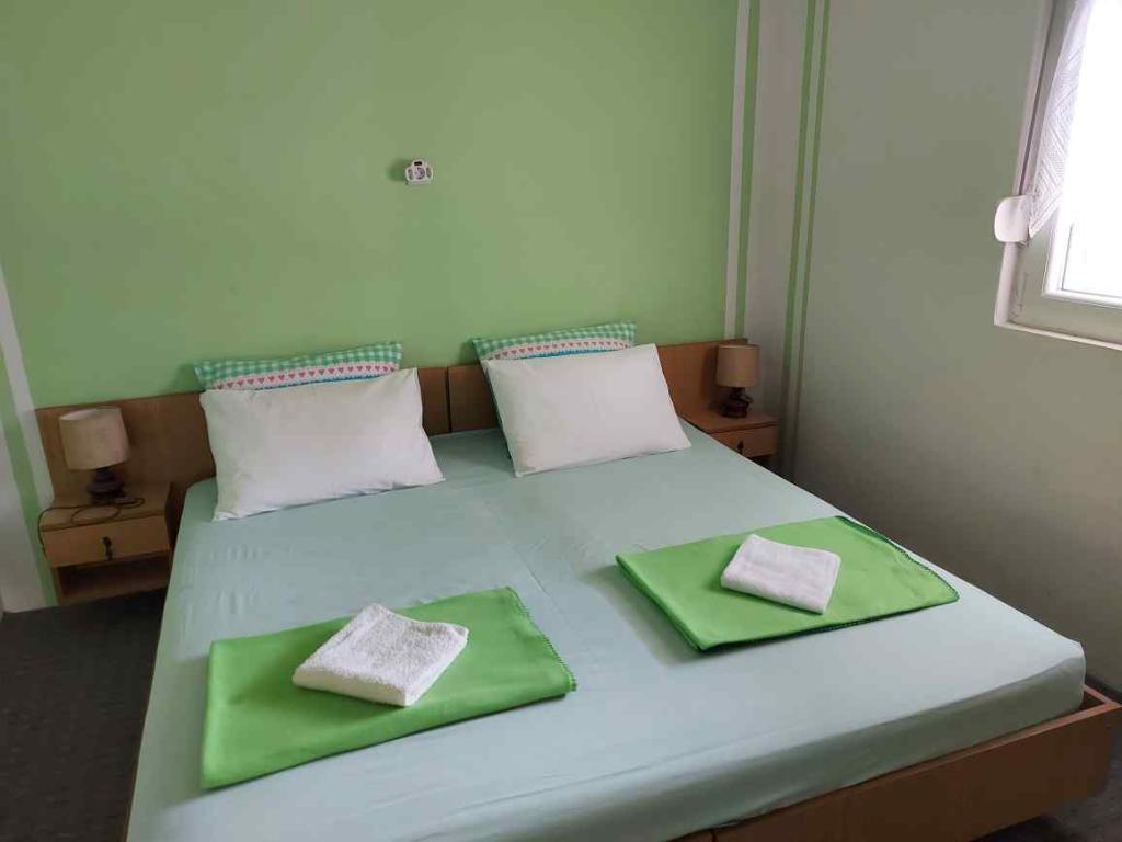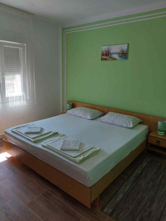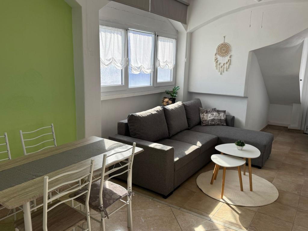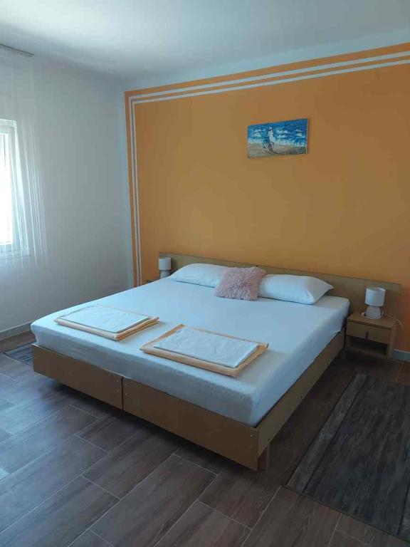 Apartmaji se nahajajo v pritličju in prvem nadstropju družinske hiše, ki se nahaja v mirni in prijetni soseski, idealni za sproščujoče počitnice. Gre za dvosobna, moderno opremljena in popolnoma opremljena apartmaja, ki ponujajo vse, kar potrebujete za prijetno bivanje. Gostom je na voljo brezplačen brezžični internet, klimatska naprava, Smart TV, varovano parkirišče in možnost uporabe žara. Plaža in središče mesta sta oddaljena le 300–400 metrov, zato avtomobil ni potreben. V neposredni bližini so trije večji supermarketi, pošta, klinika, lekarna in tržnica ter številne restavracije, pekarne in kavarne. V poletnih mesecih se v mestu vsak dan organizirajo različni dogodki ter zabavne in kulturne dejavnosti. V bližini apartmajev je tudi otroško igrišče, zaradi česar je namestitev še posebej primerna za družine z otroki.