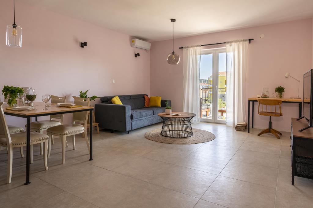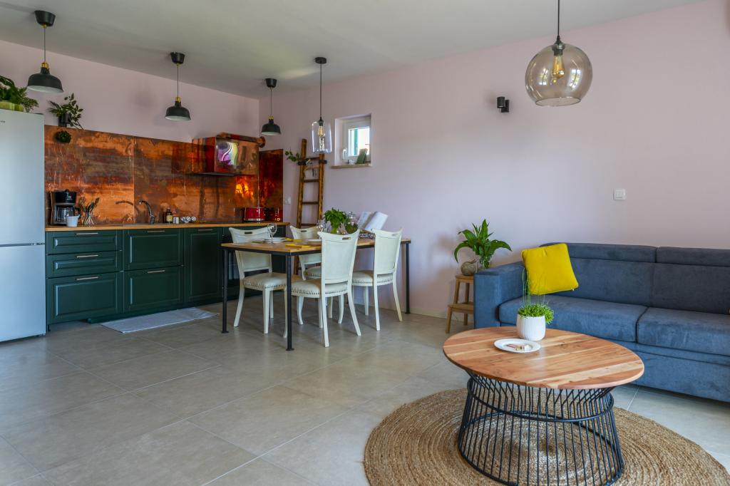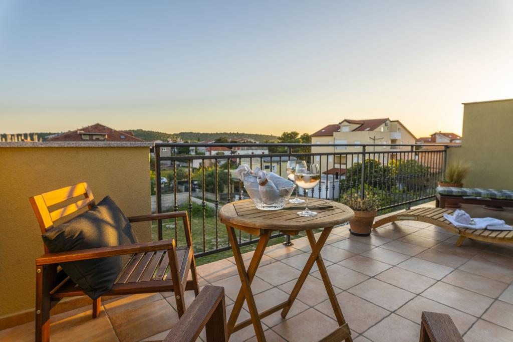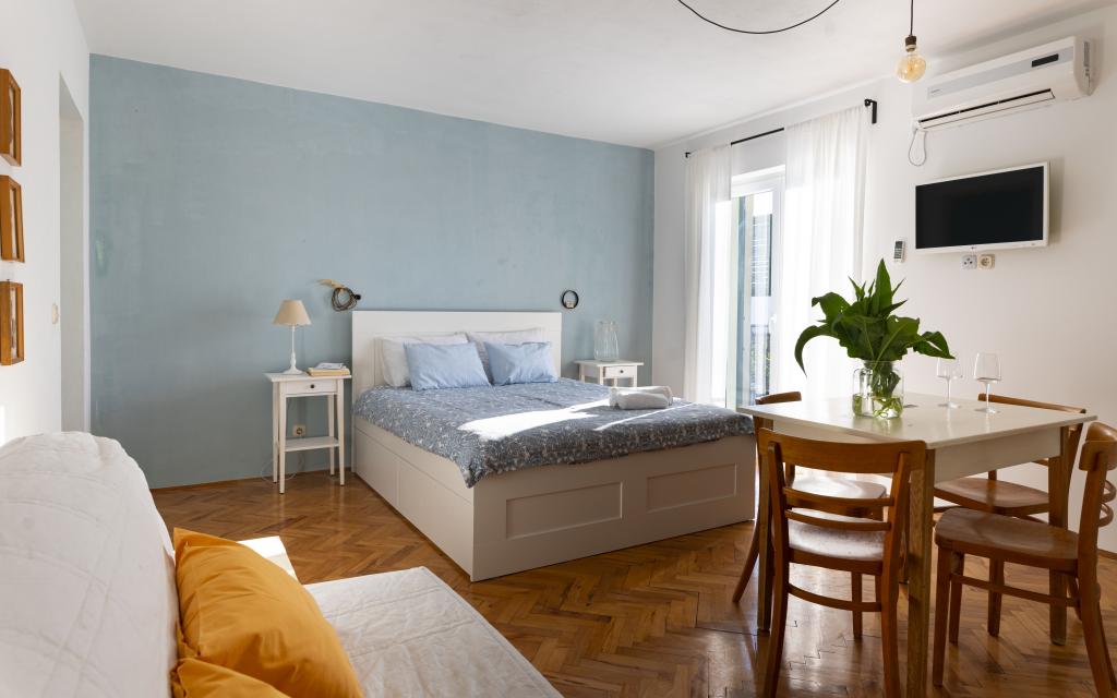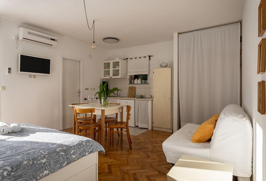 Naša hiša s 5 nastanitvenimi enotami se nahaja v Pirovcu, v bližini mesta Šibenik. Namestitvene enote so razporejene v 2 nadstropjih hiše, v pritličju katerih smo vaši gostitelji. Naše nastanitvene enote izžarevajo mešanico tradicije in modernosti, glavna nit pa je vdihniti novo življenje vsemu staremu in dotrajanemu ter ga posodobiti. Vsaka nastanitvena enota pripoveduje svojo zgodbo, na vas je, da se odločite, kateri zgodbi pripadate. Vsak ima opremljeno kuhinjo, spalnico, vsaj eno kopalnico, prostor s televizijo in teraso. Vse enote so klimatizirane in imajo vse potrebne naprave, da bodo vaše počitnice brezskrbne in prijetne, če pa kaj zamudite, so vam na voljo gostitelji. Pred hišo smo vam zagotovili brezplačno parkirišče. Hiša je od centra in do plaže Lolić oddaljena 200 metrov.