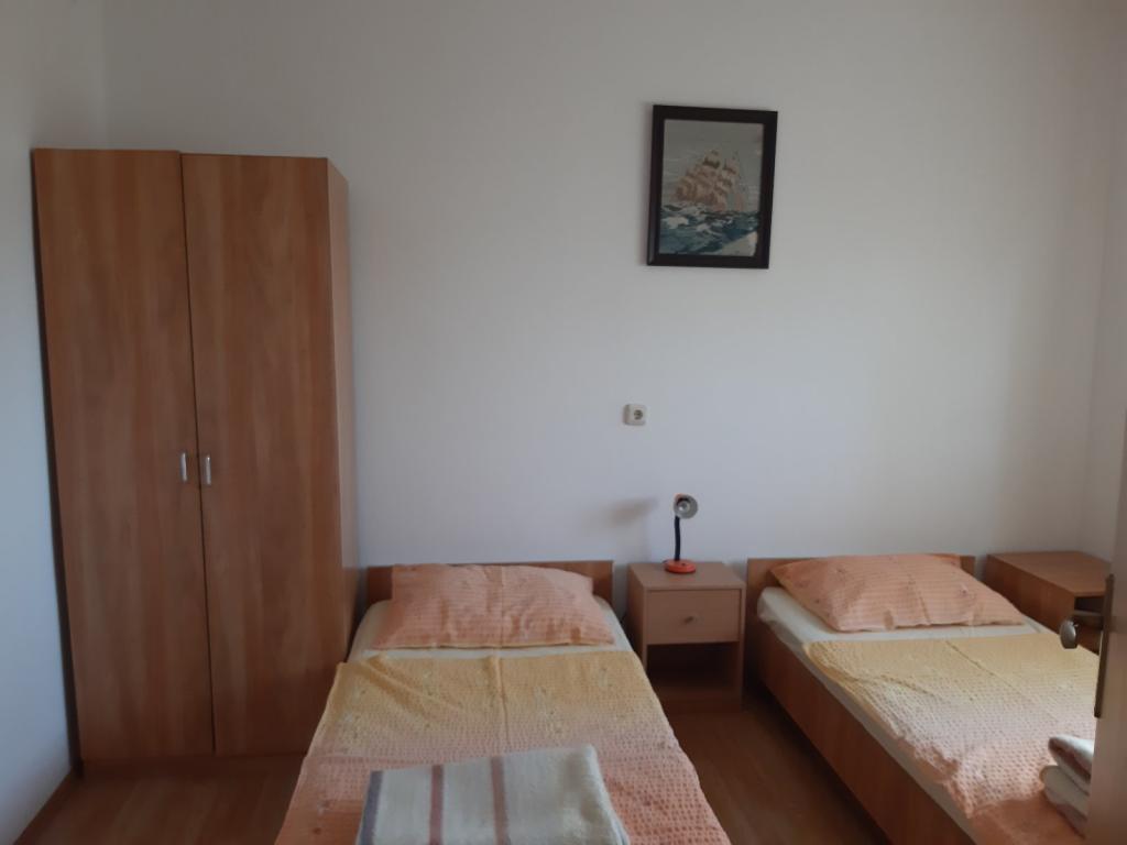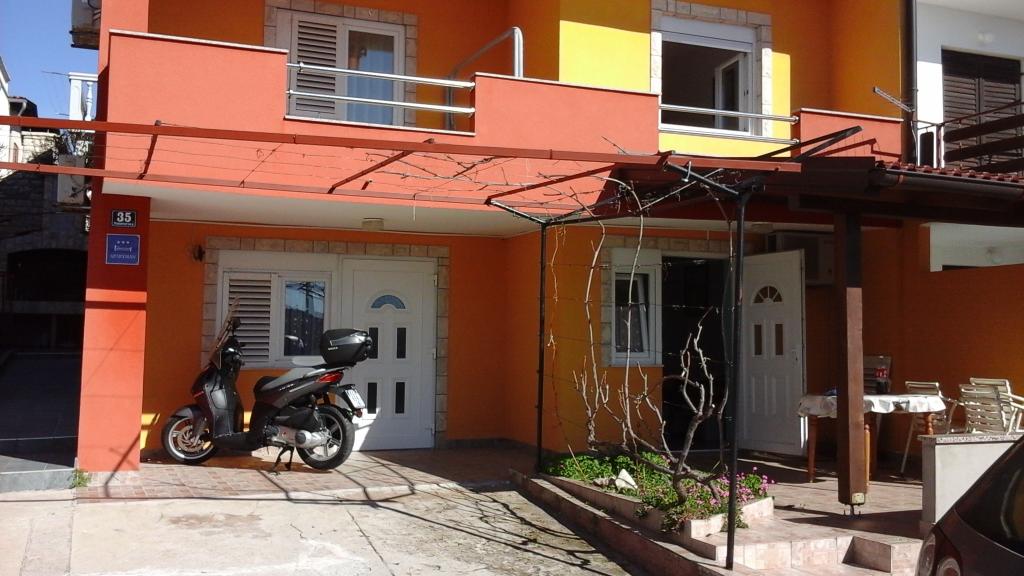 Hiša je sestavljena iz treh apartmajev Zgornji apartma ima dve sobi, kuhinjo s kavčem, kopalnico in teraso s pogledom na morje !! Sekvenc, Apartma se sestoji iz ene sobe z zakonsko posteljo plus dodatnim ležiščem in kuhinjo s kavčem, kopalnico in teraso s pogledom na morje! In vsak apartma ima lastno parkirno mesto !!!