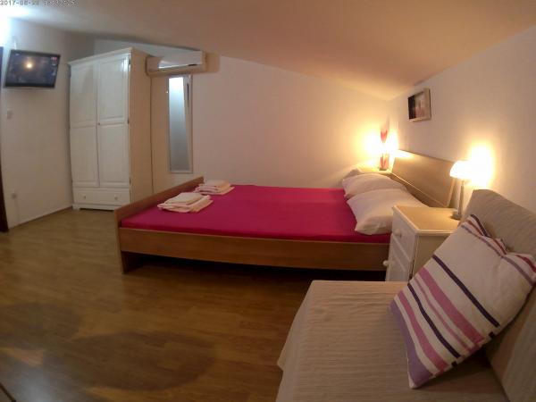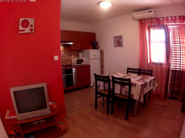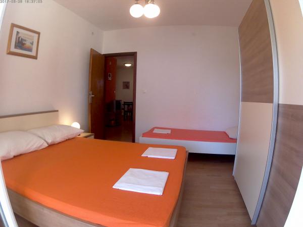 Turistična taksa je vključena v ceno. Dokument o potrditvi rezervacije ob rezervacijiKako so nas ti čudoviti ljudje sprejeli, ne morem opisati z besedami, čudoviti, prijazni, vedno na voljo. Sploh nismo dobro prispeli, gostitelj gospod Neven je kot mladenič odnesel 2 kovčka v 1. nadstropje do apartmaja, ponujal fige.. tudi čudovita in draga žena Snježana. Apartma je opremljen kot bi bil doma, kup posode, brisače.. Čisto in urejeno kot lekarna. Plaža, center in trgovina Plodine so oddaljeni približno 10 minut hoje. Zelo smo zadovoljni, zagotovo bomo spet prišli.