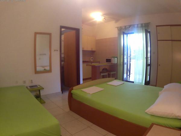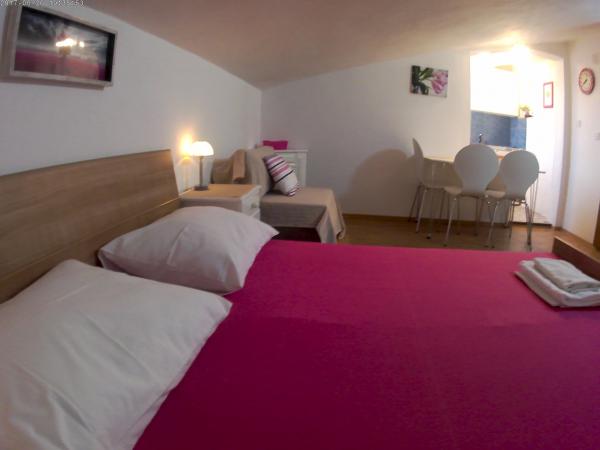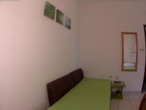 Studio je čist, urejen in opremljen z vsem potrebnim za prijeten dopust. dovolj je posode, kozarcev, kuhinjskih krp, brisač in vseh ostalih nujnih malenkosti, ki naredijo bivanje prijetnejše... postelja je najbolj udobna od vseh apartmajev v katerih smo bivali do sedaj. mirno in tiho okolje. bližina plaže, centra in trgovin. varovano parkirišče. dragi in prijazni gostitelji! čista 10!