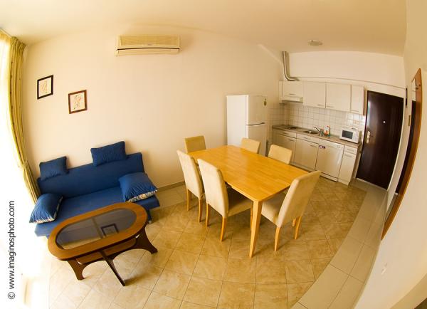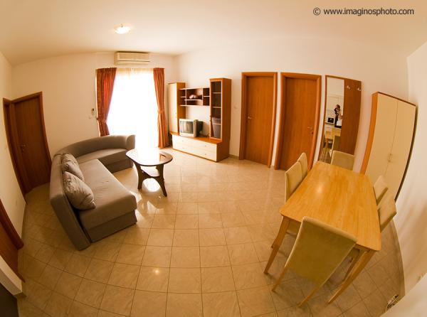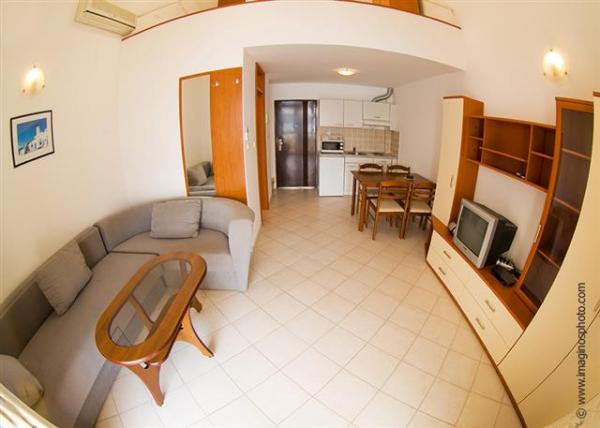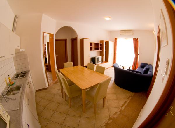 Turistična taksa nije vključena v ceno.Sprejemamo hišne ljubljenčke, doplačilo znaša 12 eur/ljubljenček/dan. Turistična taksa se plača dodatno 2,00 eur/oseba/dan; za otroke med 12. in 18. letom starosti znaša turistična taksa 1,00 eur/oseba/noč (otroci do 12. leta starosti turistične takse ne plačajo). Apartmaji so tipa A2+2, A4+2, A6+2, raztegljiv kavč za dve osebi v dnevni sobi pa se zaračuna 18 eur/oseba/dan. Za bivanje krajše od 7 noči se cena spremeni na več. Otroška posteljica na zahtevo - brezplačno.