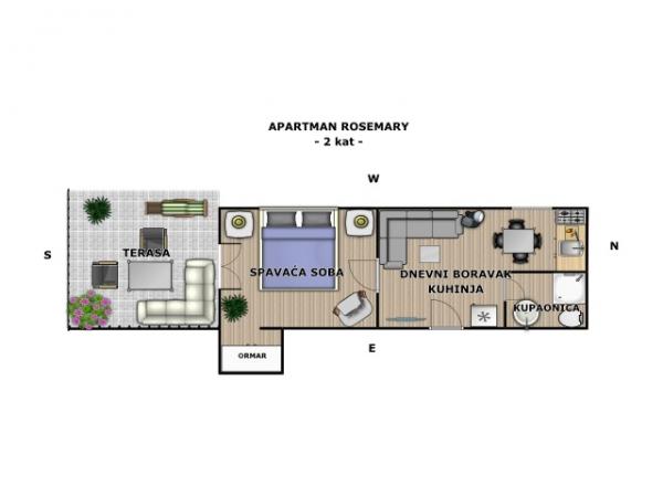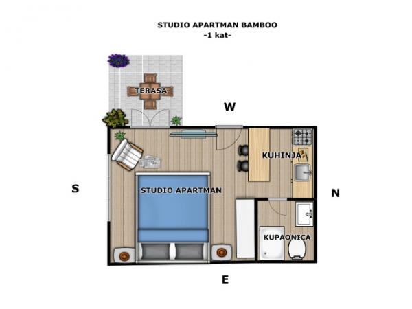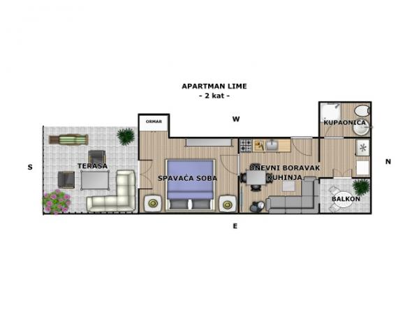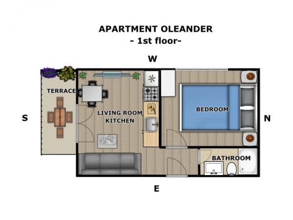 Apartma za dve osebi, možnost dveh dodatnih ležišč (35 m2)