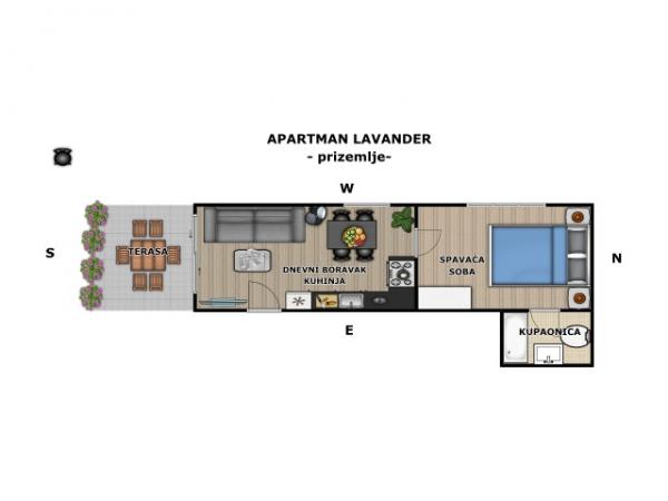 Apartma za dve osebi, možnost dveh dodatnih ležišč (40 m2)