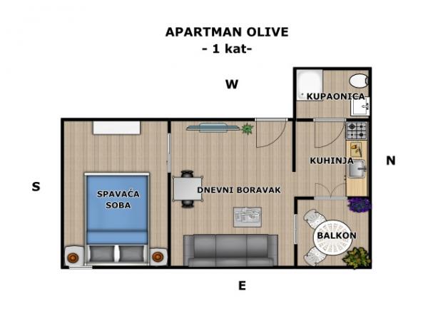 Apartma za dve osebi, možnost dveh dodatnih ležišč (45 m2)
