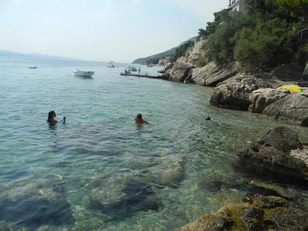 Možnost najema ležalnikov in senčnikov na plaži pod hišo. 15 m od plaže se nahaja stranišče z zunanjimi tuši.