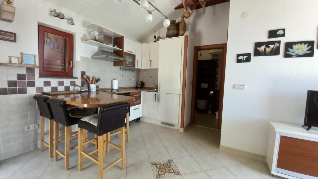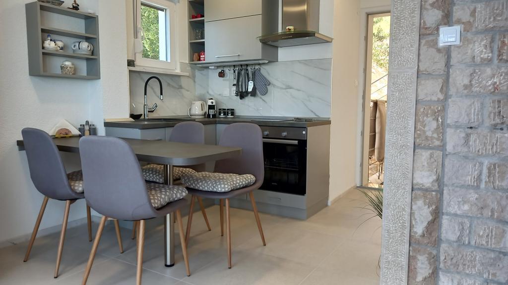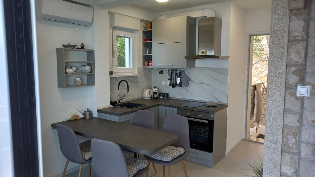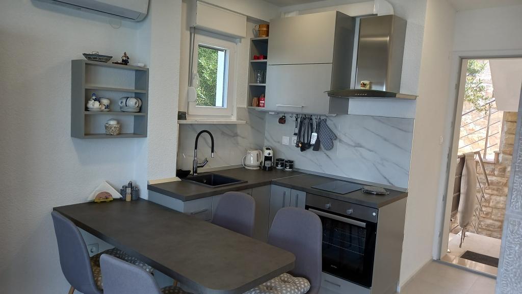 Lep, miren kraj. Apartma popolnoma opremljen, manjka samo pralni stroj. Sicer pa vse, kar si lahko zaželite. Toaster, kavni aparat, stiskalnica, obilo posode, sklede, kozarci in lonci ter ponve za vsakodnevno kuhanje. Brisače, robčki in papir, vrečke v košarici samo sanje. Veliki hladilnik z zamrzovalnikom. Klimatska naprava. Dostop do žara po dogovoru lastnika kadar koli. Vedno pripravljen les za celoten žar. Lastniki koristni, prijazni, prijazni, komunikacija popolnoma kul, ki želi govoriti. Od gospe lastnice okusne domače slane piškote (vzeli smo tudi recept) in sladko specialiteto Bosenska. Priporočamo tudi vino iz kleti družine Lončar, predvsem rdeče vino :-). Lastniki načrtujejo razširitev terase, kar bo še en bonus. Dostop do plaže je, kot je že opisano spodaj, resnično zaskrbljujoč, še posebej, če je vroče in stvari nosite na plažo. A plaža je lepa, čista, super snorkljanje, skoki v vodo, čolni. Na plaži smo pustili vse čez noč in nikoli nismo izgubili ničesar. Hvala, da je bilo najlepše stanovanje v zadnjih 6 letih. Vsako leto gremo v drugo mesto, a zagotovo se bomo vrnili sem.