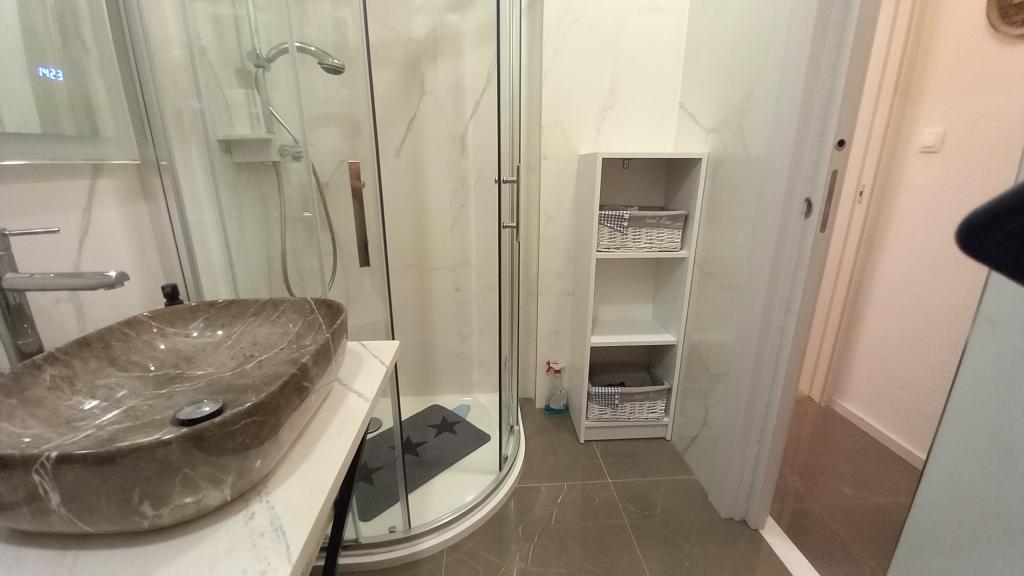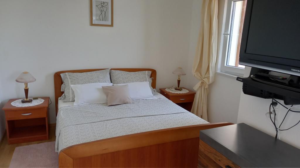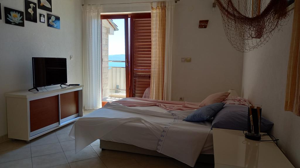 Stanovanje sva ostala 10 dni od 07/22/2016. Stanovanje je zelo dobro opremljena, razen pralnih strojev, pa res nič ne manjka, kuhinja je dobro opremljena. Domačini so zelo prijazni, gospa govori angleško, ampak tudi govoriti z domačo hrvaško - kjer je volja in način :-) Mesto je dokaj mirno, saj smo bili družina zelo mi je všeč, ni bilo hrupa na tem območju. toda medtem ko mnoge družine so tako otroci najdemo tudi prijatelje. Lepo neokrnjene vode in otroci cenijo blizu obale (okoli 20m) je skala, iz katerega lahko skočite in cevi za zrak okoli njega. Na majhni plaži smo bili, da bi imele enake ljudi, zato ne skrbi sploh pusti nekaj na obali. Edina stvar, ki jo lahko spustite po strmih stopnicah do plaže. Uspelo nam je kot toplo-up, ampak za nekatere je to lahko problem. Bili smo že drugič v tem stanovanju in smo bili zadovoljni. Priporočam.