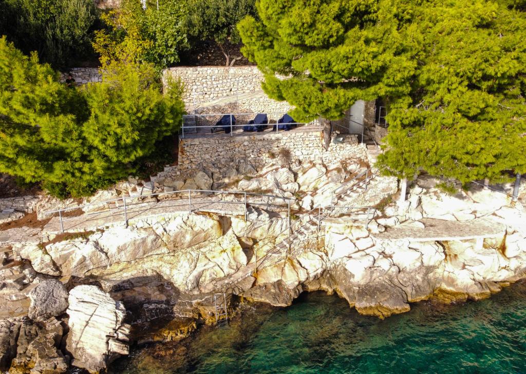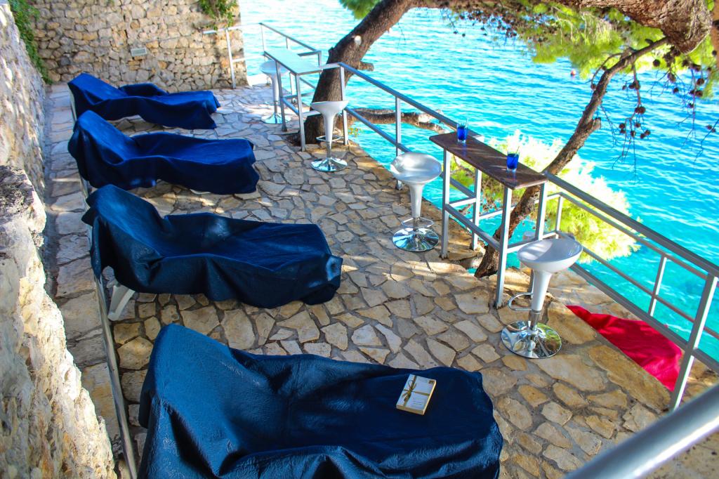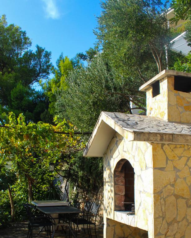 Zagotovljena dva ležalnika na apartma v senci borovcev. Na plaži je tudi zunanji tuš. Žarišče na plaži za nočno kopanje pod hišo.