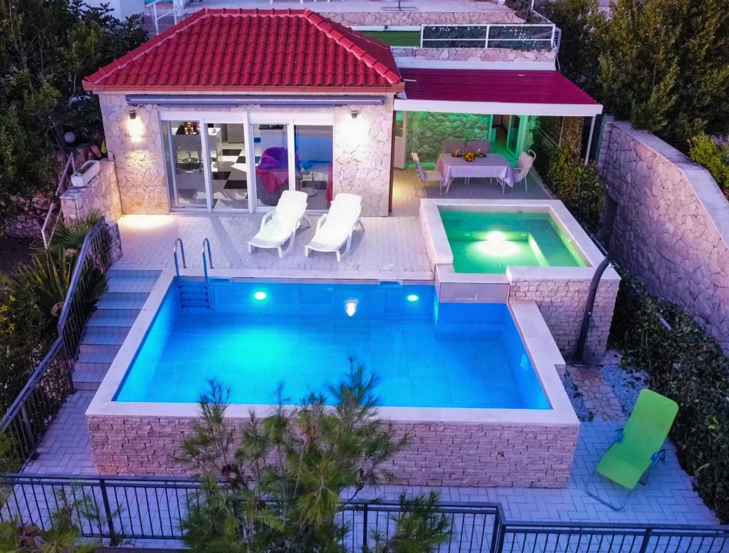 Preberite več Namestitvene enotePrihod po 14. uri. Odhod do 10. ure. Akontacijo v višini 30% celotne cene plačate na TRR, katere podatke posredujete ob rezervaciji, preostali znesek pa ob prihodu. Po prejemu akontacije se rezervacija šteje za dokončno. Hiša je namenjena izključno počitku in sprostitvi naših gostov, prirejanje zabav in motenje javnega reda in miru je strogo prepovedano, zato spoštujte naše pogoje. Če imate radi nočno življenje in nepozabne trenutke, se 20 minut (z avtomobilom) od nepremičnine nahajajo številni nočni klubi, pubi, diskoteke in bari na plaži (Makarska, Omiš, Baška Voda).