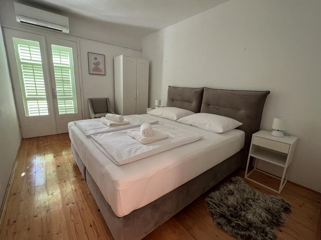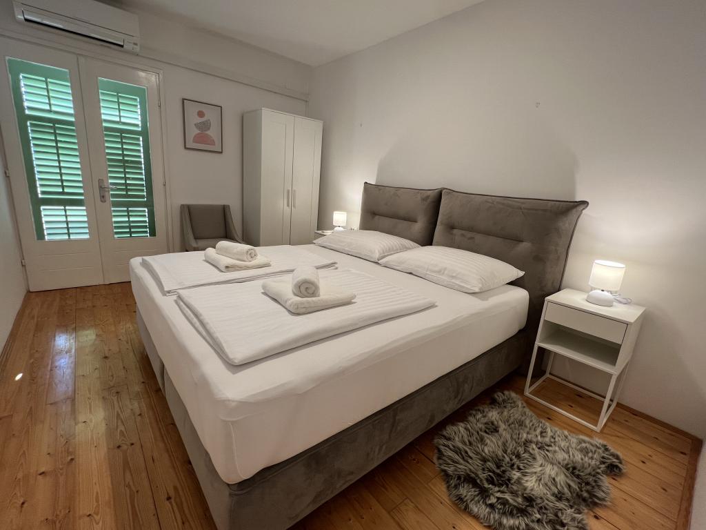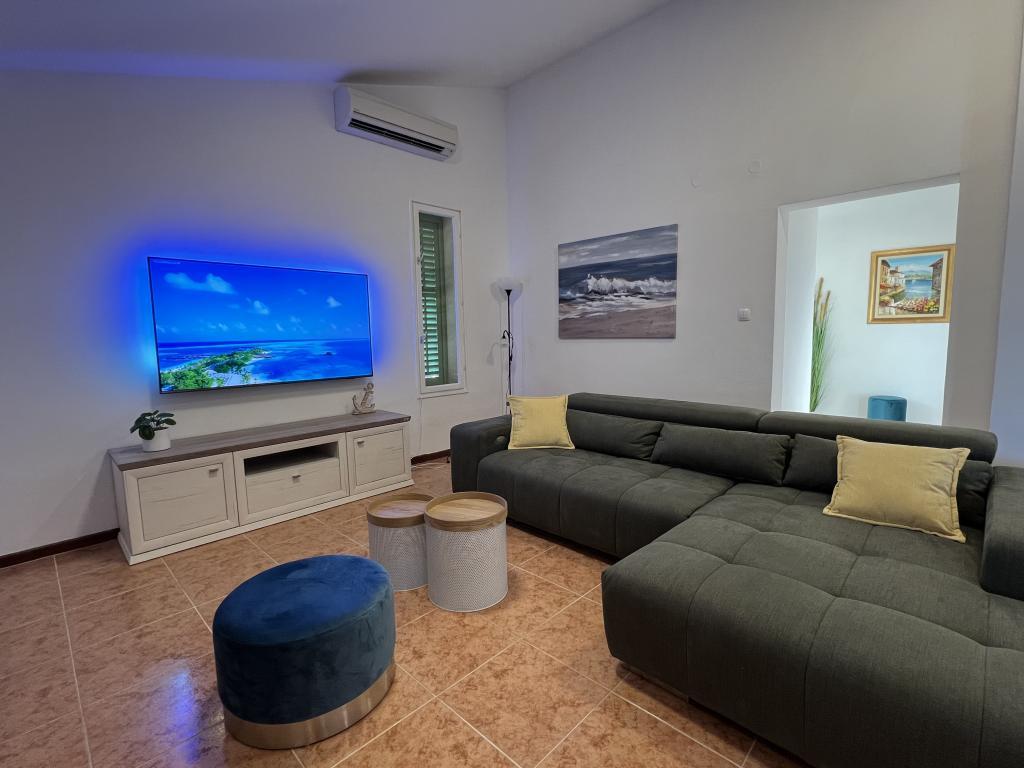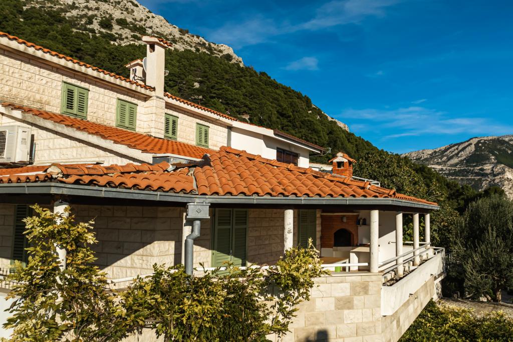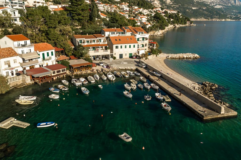 Idilična dalmatinska Vila Stina se nahaja v mirnem delu ribiške vasice Pisak na Omiški rivieri. Nepremičnina je od morja oddaljena 70 m zračne črte in ponuja popoln oddih za 8 oseb, ki se lahko namestijo v 3 spalnicah, opremljenih z vzmetnimi posteljami in dodatnim raztegljivim kavčem za dve osebi. Vse sobe in sobe v hiši so klimatizirane z ločenimi klimatskimi napravami. Hiša ponuja udobno namestitev v veliki dnevni sobi, ki je s kuhinjo povezana s prostorno zunanjo teraso s pogledom na morje. Pogled na morje se ponuja tudi iz superior sobe z balkonom. Preostali dve sobi imata intimen pogled na zunanji vrt na severni strani nepremičnine. Na zadnji strani terase je zunanji žar. Brezplačno parkirišče za 4 avtomobile se nahaja pred hišo in omogoča udoben dostop gostom s prtljago. Hiša je le nekaj minut hoje oddaljena od dveh čudovitih naravnih prodnatih plaž. Oddaljenost od centra mesta in lokalnih trgovin je približno 10 minut hoje.