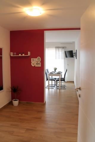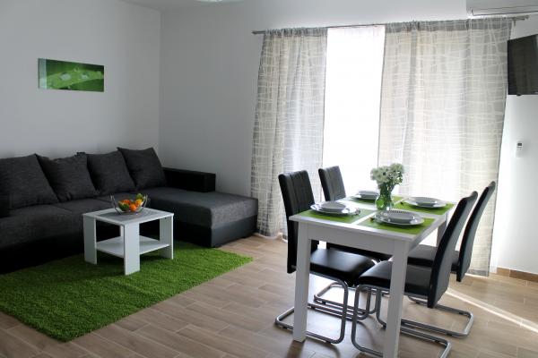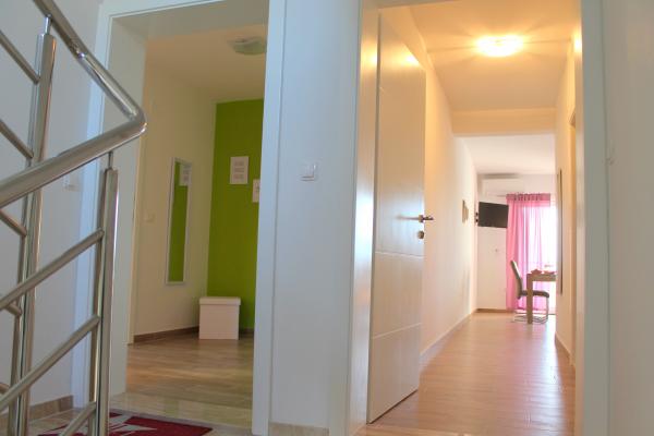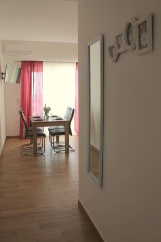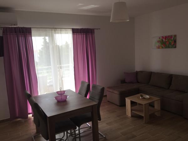 Sodobni apartmaji v središču Podaca na Makarski rivieri. Lepa prodnata plaža je 100 metrov od hiše. Apartmaji so idealni za družine z otroki. V 20 metrov je kavarna, trgovina, trgovina z živili, igrišče, park in vodni tobogan. Ob hiši je pot do stare vasi, kjer si lahko ogledate cerkev iz leta 1963. Idealno za ljubitelje narave. Zaradi odlične prometne povezave, gostje so sposobni, da gredo na izlete (Dubrovnik, Mostar, Makarska, Split, Medjugorje, ustja reke Neretve, Baćinska jezera polotoku ..) Vsak apartma ima površino 50 m2 in je sestavljen iz naslednjih prosotrija: dnevna soba s kuhinjo in jedilnico, hodnik, kopalnico, spalnico in ustrezne WC-jem in balkon. Parkirišče je ograjeno in se nahaja v stavbi. Vsi apartmaji imajo klimatsko napravo, TV / satelit (dnevna soba), wi-fi, aparat za kavo, sef. .