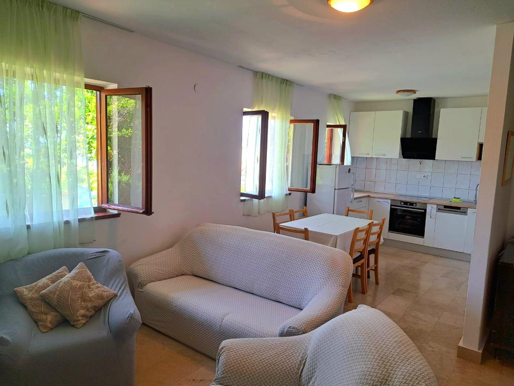 Turistična taksa je vključena v ceno.Živimo in delamo v Splitu, vikend hišo smo gradili v skladu z željo po počitnicah, ki jih preživimo včasih čez vikend, če je hiša prosta. Ponujamo vam enake počitnice, zelo dostopne. Mislimo, da smo posebni, ker ste sami v naši hiši, brez nas gostiteljev. Pozdravljamo vas in sprejmemo, po plačilu boste ostali brez nas ob zvoku morja. Želimo le goste, ki bodo varovali in negovali našo in vašo hišo, v naši odsotnosti pa kot njihov dom. Zaradi prijetne klime, naravnega okolja, čistega zraka in bližine morja je Hiša odprta za goste vse leto. V predsezoni, podsezoni in preostalem delu leta ponujamo velik popust v višini 60%! vedno brez prisotnosti gostitelja.