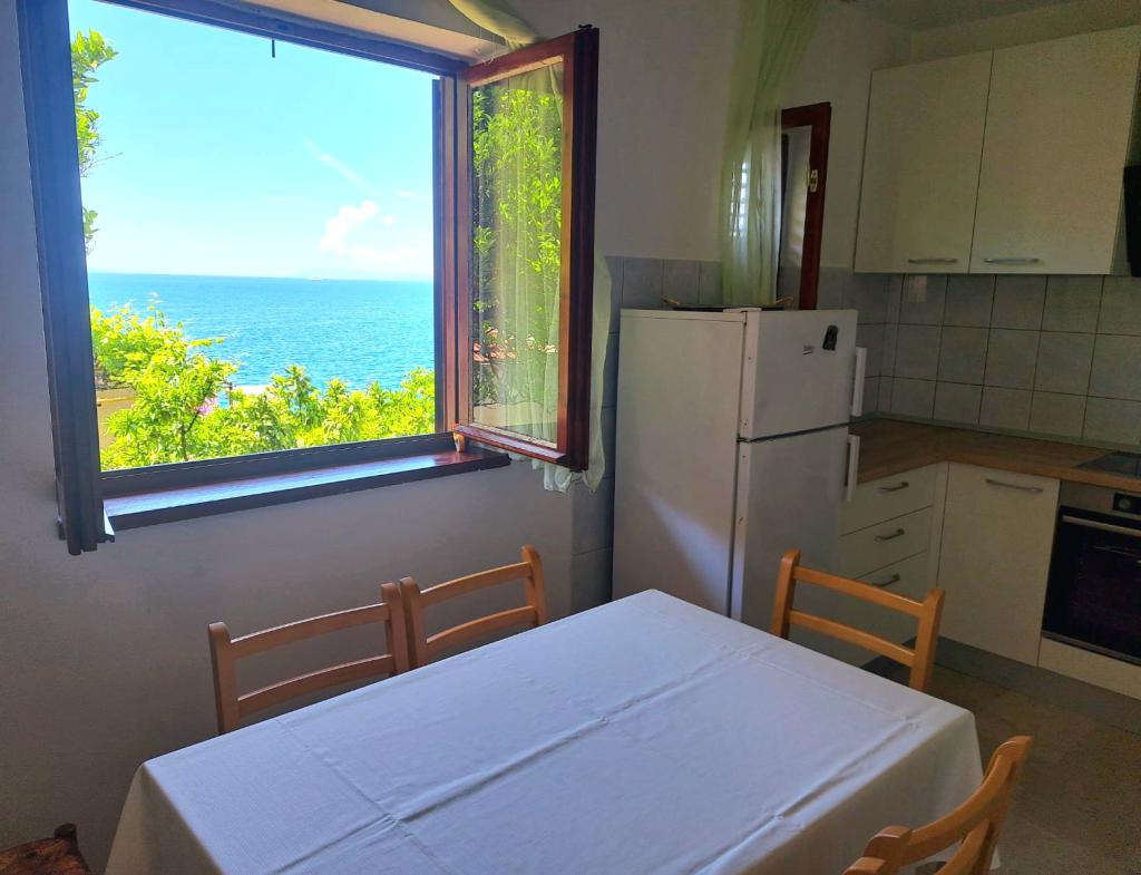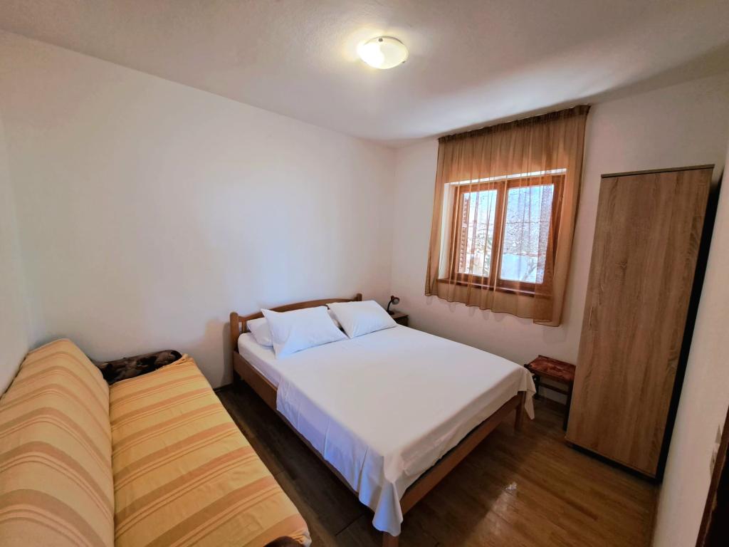Preživite prijeten in nepozaben dopust v Malem mestu na obali, med Zaostrogom in Podaco, na najlepši jadranski rivieri v naši vikend hiši, 65m2, kapaciteta 5 2, opremljeno: 2 ločeni spalnici s skupno 5 ležišči, dnevna soba, kavč izvlečna postelja za 2 osebi, klima, kuhinja, stranišče in kopalnica, pralni stroj, TV, popolna posoda, terasa s pogledom na morje in parkirišče ob hiši. Če iščete mir in tišino s svojimi najdražjimi, brez prisotnosti nas gostiteljev (sami ste v hiši), kjer narava povezuje mirno modro morje s čudovito goro Biokovo, vedite, da ste jo našli ravno tam. Ta harmonija narave naredi vaše počitnice nepozabne. Če iščete kakovostne počitnice, pa tudi kakovostne goste in ljudi, nas kontaktirajte. Z veseljem, odprtih src, vam iskreno želimo družino dobrodošlice - Burmaz