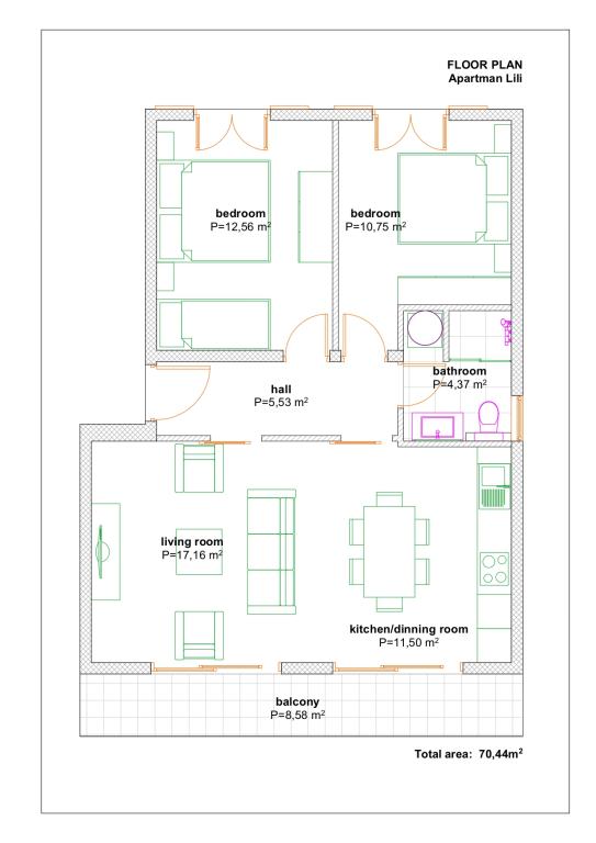 Apartma se nahaja v 1. nadstropju družinske hiše, v samem središču Podgore, 50 metrov od glavne plaže. V radiju 100 m se nahajajo restavracije, kavarne, trgovine, pošta, lekarna, otroški park in številni drugi objekti. Sestavljen je iz dveh prostornih spalnic, ene s tremi posteljami in ene z dvema posteljama. Obe sobi sta klimatizirani. Apartma sestavljajo tudi kopalnica, hodnik, prostorna dnevna soba z jedilnico in kuhinjo. Tudi ta soba je klimatizirana. Primeren je za večje družine. Površina apartmaja je 64 m2 + velik balkon. Apartma ima svojo garažo ali parkirno mesto, ki je vključeno v ceno. Vsi stroški so vključeni v ceno. Apartma ima svoj brezplačni neomejeni Wi-Fi internet. Možno je zahtevati otroško posteljico s posteljnino in otroški stolček. Za vse ostale informacije smo vam na voljo po e-pošti ali mobilnem telefonu. APARTMA JE BILO POPOLNOMA RENOVIRANO IN MODERNIZIRANO ZA POLETJE 2024!