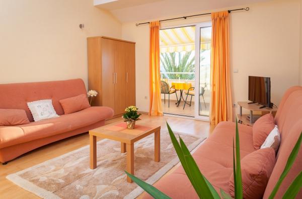 Družinska hiša s sodobnimi apartmaji. Nahaja se na obali, v pristanišču Podgorica. Oddaljenost do prve plaže je 4-5 minut hoje. Center, trgovine, kavarne, restavracije so v bližini.