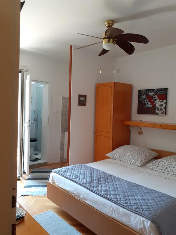 Lepo gospodinja. Soba čista in pospravljena s pogledom na morje, TV, hladilnik, Wi-Fi in zasebno kopalnico. Ima tudi parkirišče. Lokacija je odlična, v bližini pristanišča, mesta, plaže, Riva, trgovine in restavracije, pa vendar v mirnem okolju.
