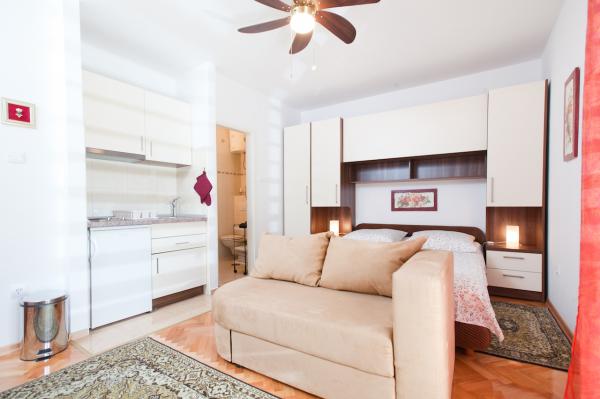 Apartmaji so brezhibno čisti in opremljeni s čisto vsem, kar potrebujete, plus velika kuhinja s teraso, ki je na voljo vsem gostom. Lastniki se zelo trudijo za svoje goste in to se vidi, postrežba je dobesedno kot v hotelu. Čestitke in se vidimo spet!