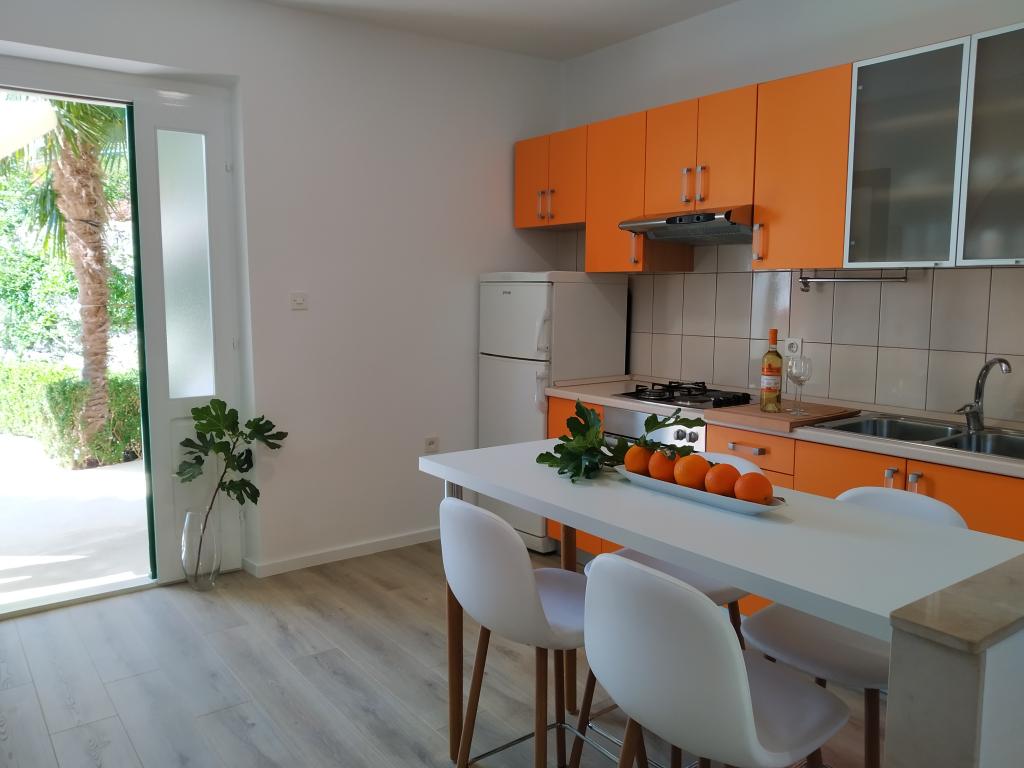 Udobno opremljeni in popolnoma opremljeni apartmaji v družinski hiši v mirnem predelu Podgore; le 3 minute hoje od centra mesta in plaže. Hišo obdaja vrt in vsak apartma ima veliko in lepo opremljeno teraso.