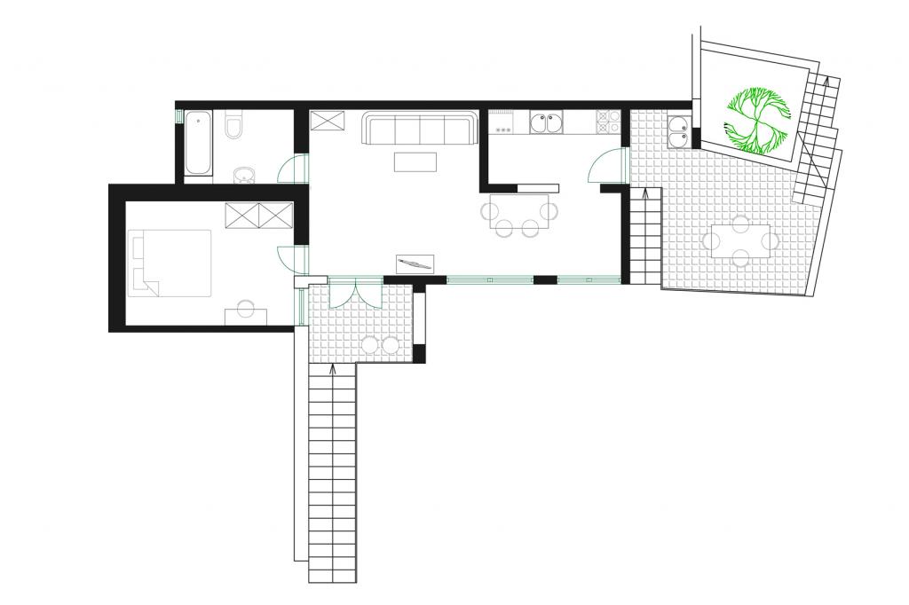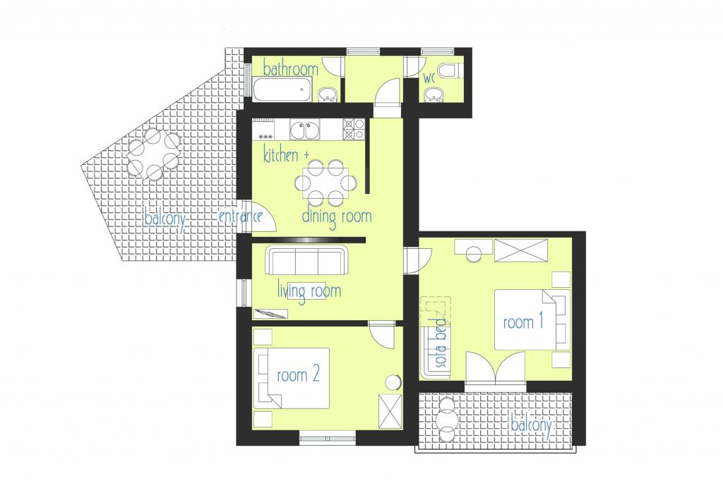 Apartma za dve osebi, možnost dveh dodatnih ležišč (50 m2)
