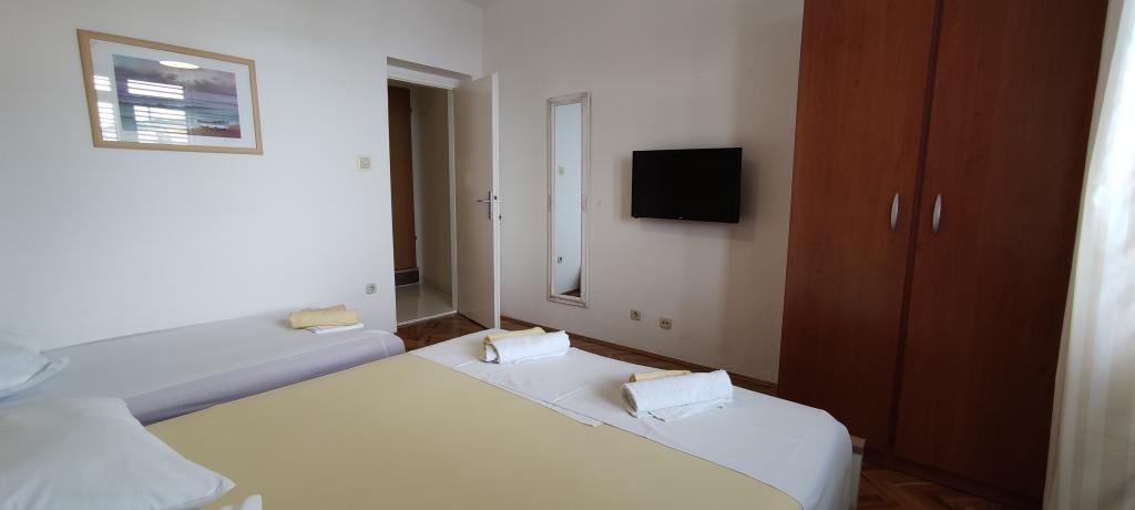 Apartmaji Joško-Joseph drevesa, smo v mestu Podgora 100m od morja, hiša je ob morju do plaže je 3-5 minut hoje na obali morja restavracije bari trgovine. Od morja do doma traja 7-10 min hoje, ker v hiši položaj. Hiša iz mesta daje 10-min Apartmaji so vse s pogledom na morje, vsi imajo kuhinjo, ki so opremljena za kuhanje (kuhinja vključuje vilice, žlice, noži, ki izhajajo, ponve itd .. mikrovalovna pečica, kuhalnik vode) Vsaka kuhinja je ločena od sobe vrat, tako da je vonj hrane ne doseže prostor. Opomba. Studio za 2 No 5 Kuhinja in spalnica v enem prostoru v hiši s teraso za sedenje, s pogledom na morje. Opomba. Stanovanje je 2 +2 AP6 nahaja v starem Podgora v mirnem stanovanje se nahaja v pritličju opremljeno tla, klima, TV, kuhinja, wc žar soba z zakonsko posteljo v dnevni sobi raztegljiv kavč za 2 osebi dvorišču. Živali prenosljive.