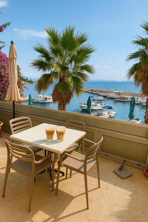 Lepo, lepo stanovanje. Nove, s številnimi skrbno izbranimi podrobnostmi!, Wonderful in prijazni lastniki, odlična lokacija, dodatno teraso s čudovitim pogledom na morje in marino. Najboljši kraj za dopust v Podgora. Priporočamo, da vsa stanovanja bit !!!