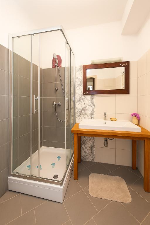 Apartmaji so veličastni: čudovit pogled z okna, dobro pohištvo, vodovod, zadostno število jedi. V večernih urah je bilo lepo sedeti na balkonu in pogledati morje. Prijateljski gostitelji so nam zelo pomagali. V bližini apartmajev najdete najboljšo plažo v Podgori: široki, plitvi kamenčki, borovci, čista voda, malo ljudi.