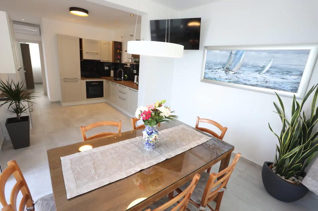 Popolnoma in moderno opremljen apartma za 6 oseb se nahaja dobesedno na plaži s čudovitim razgledom.