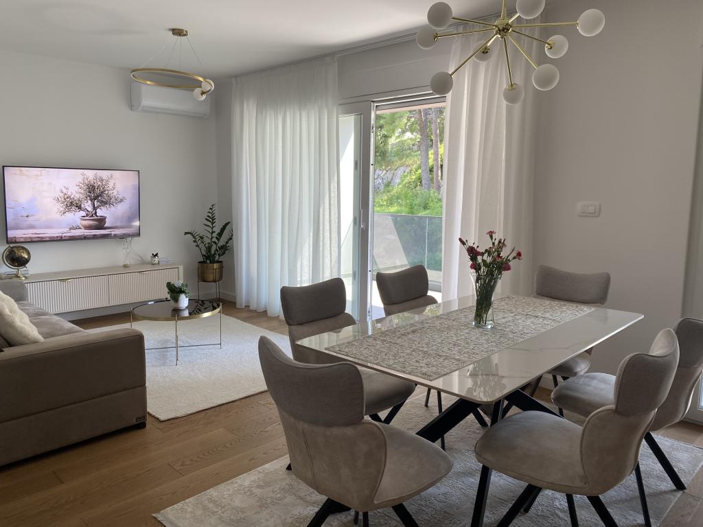 Čisto novo stanovanje! Uživajte v eleganci in udobju tega modernega, luksuznega apartmaja, ki se nahaja v mirnem in zelenem delu vasi. Apartma je idealen za tiste, ki iščejo sproščujoč oddih stran od mestnega vrveža, a hkrati dovolj blizu vseh ugodnosti - le 15 minut vožnje do centra mesta. Prostor izžareva stil in skrbno izbrane detajle, gostom pa je na voljo popolnoma opremljena kuhinja, prostorna dnevna soba, udobna spalnica in zasebni balkon s pogledom na naravo. Popolna izbira za pare, samostojne popotnike ali poslovne goste, ki si želijo miru, udobja in priročne lokacije.