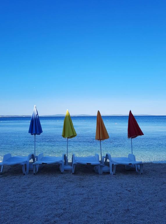 Prijetna in prostorna hiša se nahaja na sami plaži, 10 m od morja. Gostom so na voljo ležalniki. Idealna pozicija za družine z otroki. Parkirišče zagotovljeno.