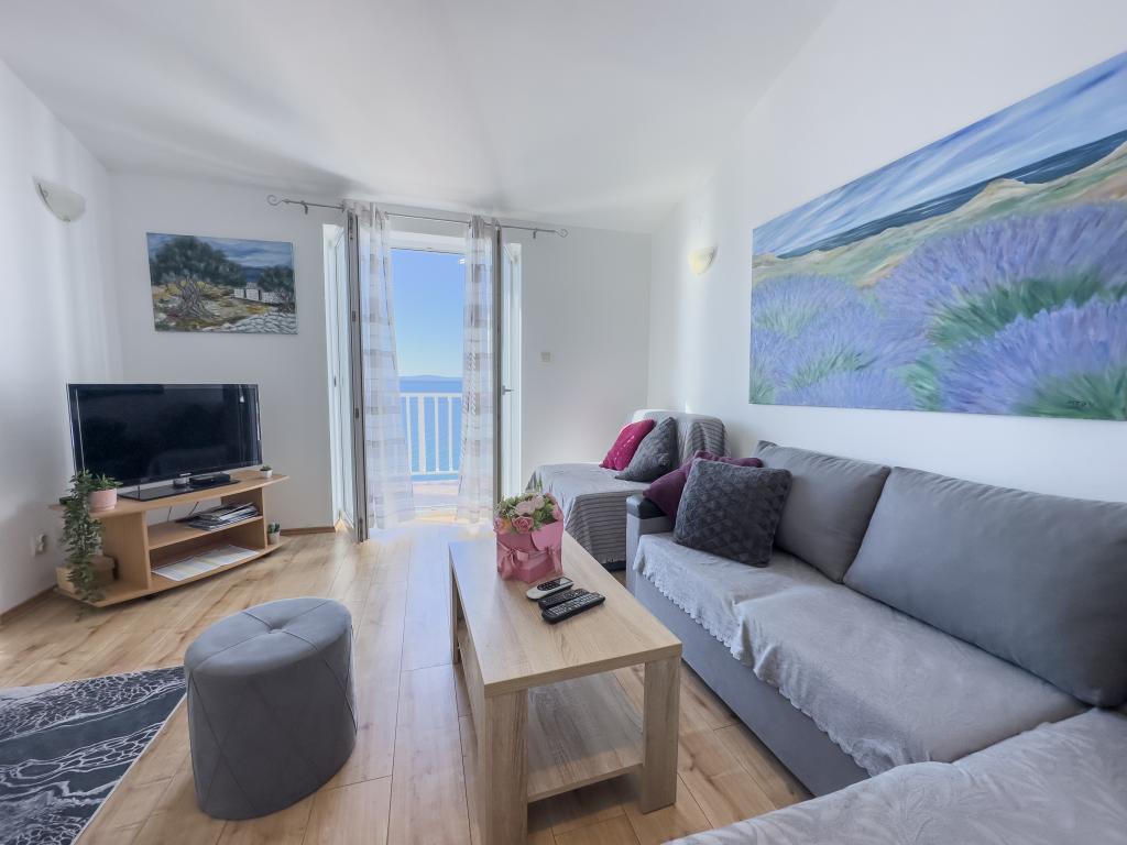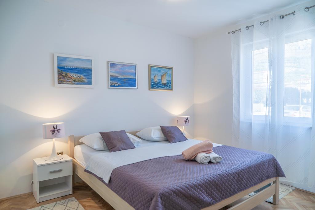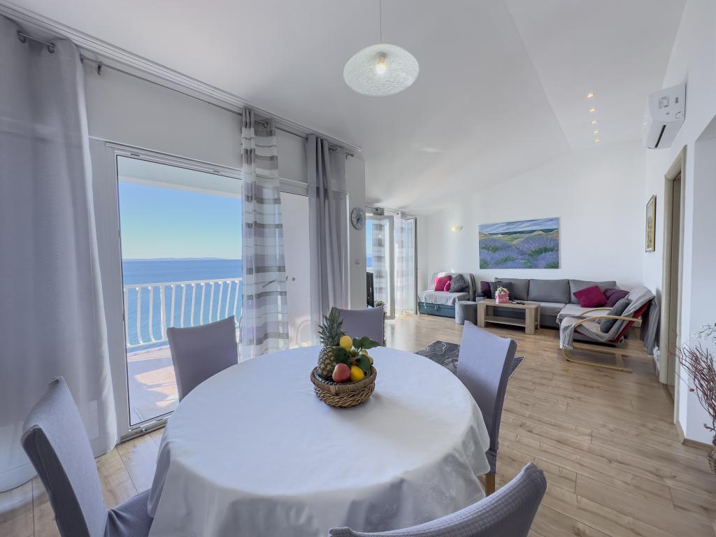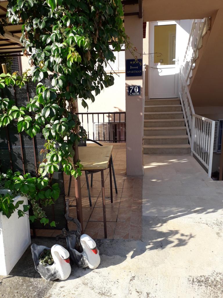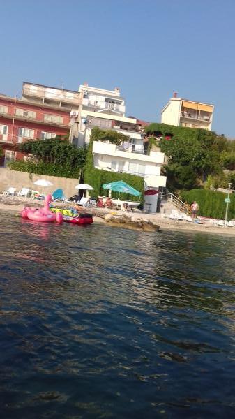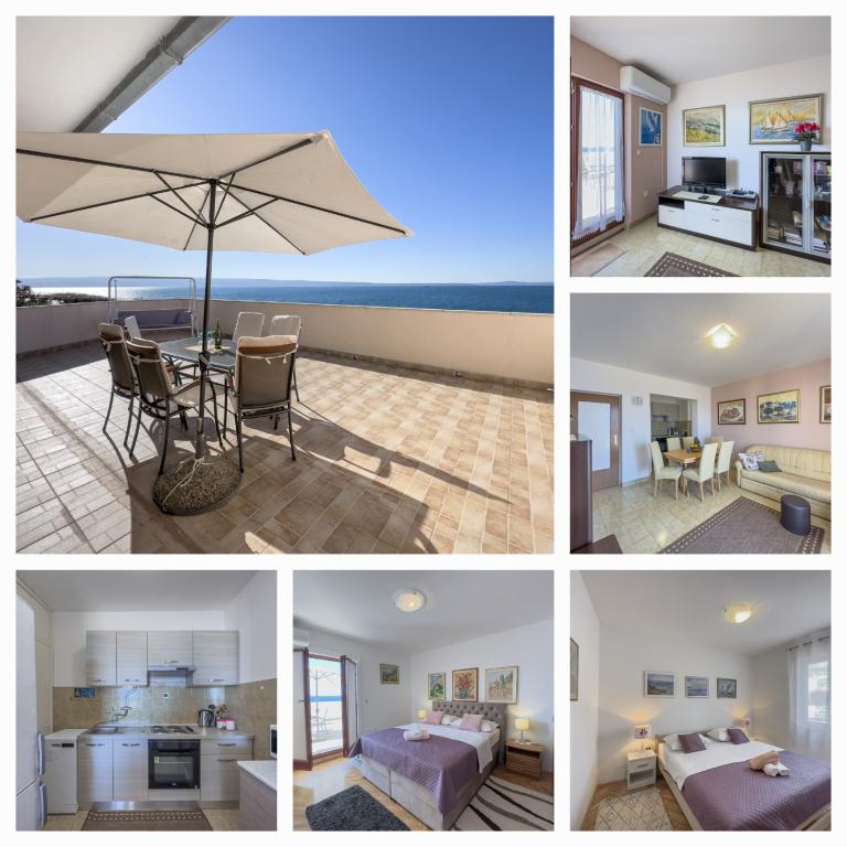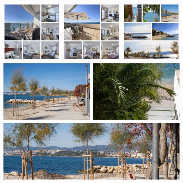 Popolnoma opremljeno stanovanje, ki se nahaja v Sv. Martina Podstrana do morja, s čudovitim razgledom na otoke in mesto Split. Plaža je prodnata, primerna za kopanje otrok z veliko promenado ob morju. Idealen je za družine z otroki, ker cesta ni prečkana. Dvorišče je ograjeno, kjer je parkirišče in žar. V bližini so trgovine, restavracije, picerije, kavarne, trgovine, zdravnik, lekarna in zobozdravstvena ordinacija, v bližini Splita z Unescovimi kulturnimi spomeniki - Šibenik, Trogir, Solin in Omiš. Apartma s je velik in udoben ter ima 4 ležalnike. Stanovanje je prostorno in udobno z velikimi senčniki z balkonom in teraso s čudovitim razgledom na morje, ki so le 30 metrov od morja in se prepričajte sami. bližnje teniško igrišče, jahalni klub, kolesarske steze, izleti z ladjico na bližnje otoke, lokalna hrana sveže ribe in druge specialitete