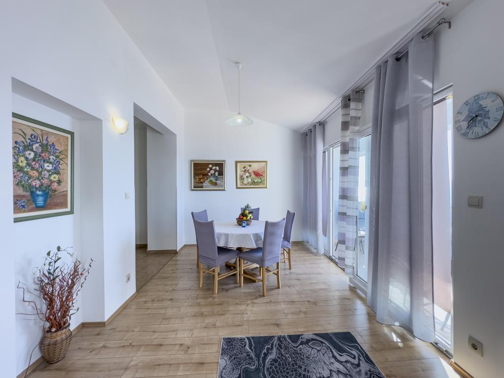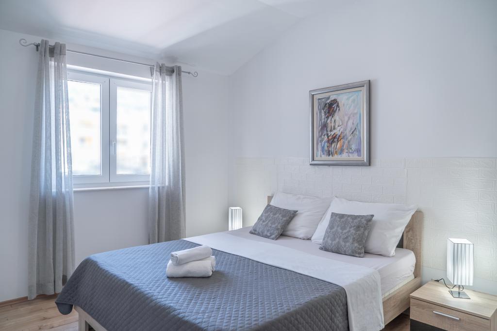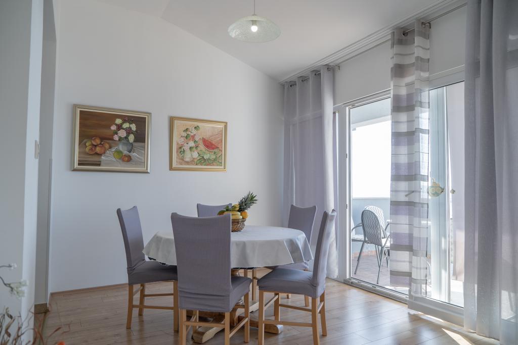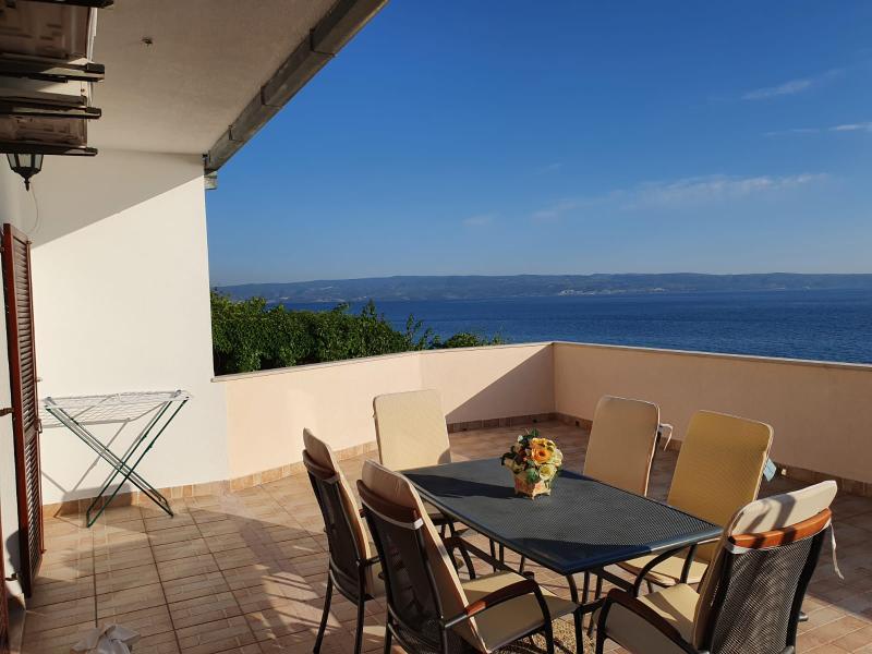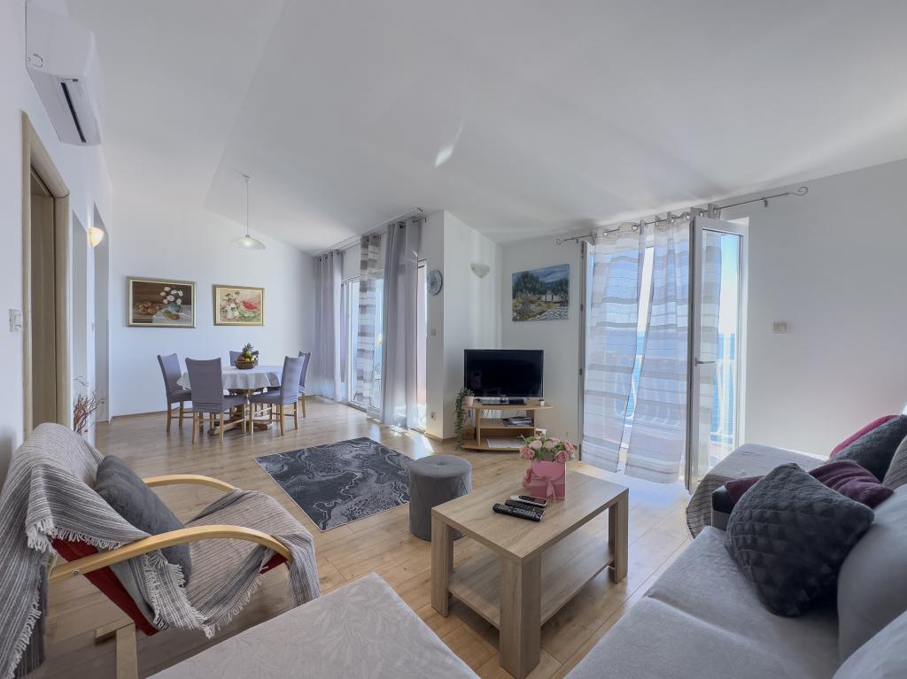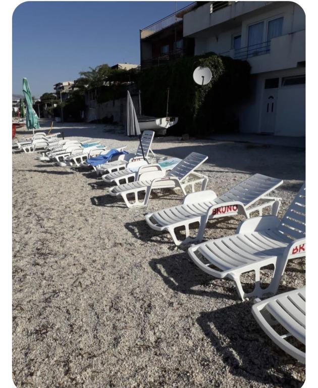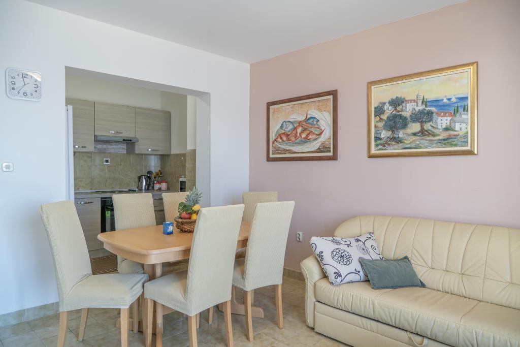 Popolnoma opremljeno stanovanje, ki se nahaja v Sv. Martina Podstrana do morja, s čudovitim razgledom na otoke in mesto Split. Plaža je prodnata, primerna za kopanje otrok z veliko promenado ob morju. Idealen je za družine z otroki, ker cesta ni prečkana. Dvorišče je ograjeno, kjer je parkirišče in žar. V bližini so trgovine, restavracije, picerije, kavarne, trgovine, zdravnik, lekarna in zobozdravstvena ordinacija, v bližini Splita z Unescovimi kulturnimi spomeniki - Šibenik, Trogir, Solin in Omiš. Apartma s je velik in udoben ter ima 4 ležalnike. Stanovanje je prostorno in udobno z velikimi senčniki z balkonom in teraso s čudovitim razgledom na morje, ki so le 30 metrov od morja in se prepričajte sami. bližnje teniško igrišče, jahalni klub, kolesarske steze, izleti z ladjico na bližnje otoke, lokalna hrana sveže ribe in druge specialitete
