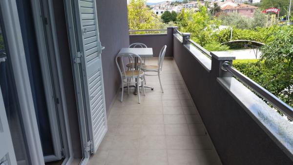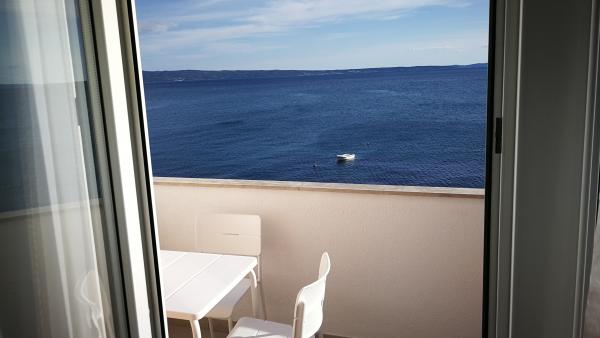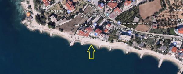 Popolnoma opremljeno stanovanje v mirni soseski, ki se nahaja v prvi vrsti do morja. Apartma se nahaja v prvem nadstropju družinske hiše, tik ob plaži, 12 metrov od morja, dve trgovini sta oddaljeni 300 metrov, restavracija je oddaljena 20 metrov. V okolici je veliko možnosti za organizacijo izletov in športnih aktivnosti.