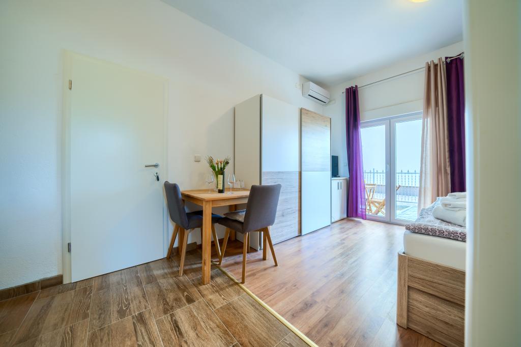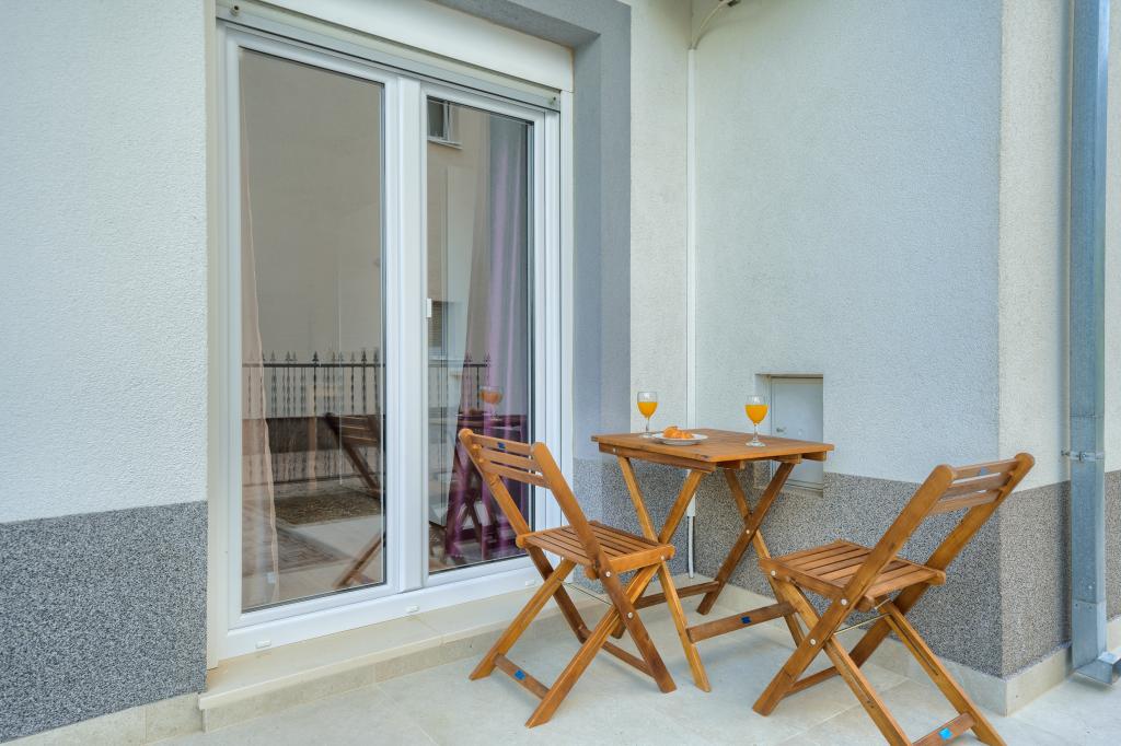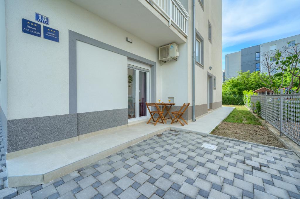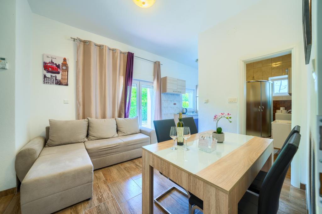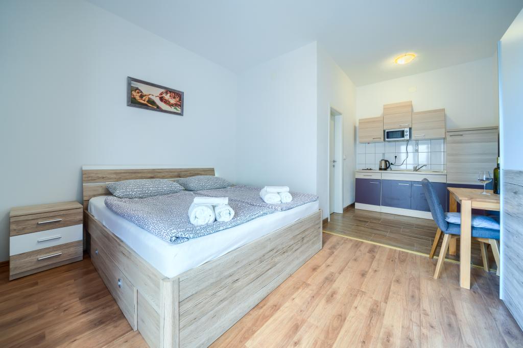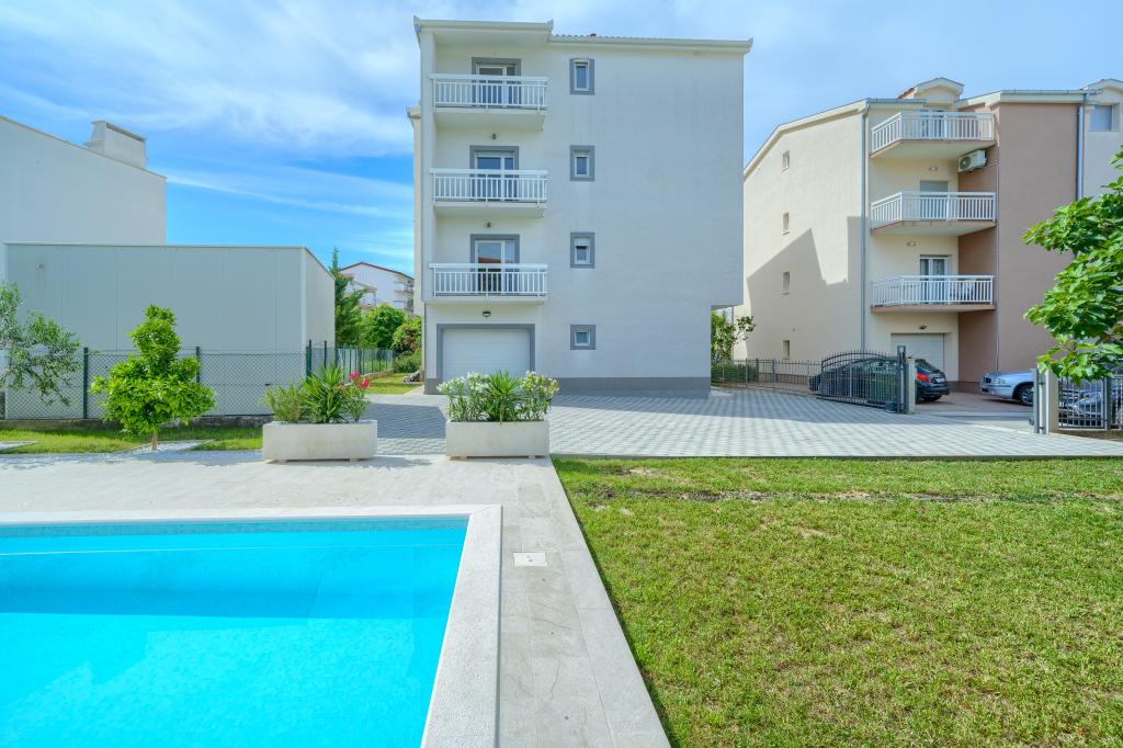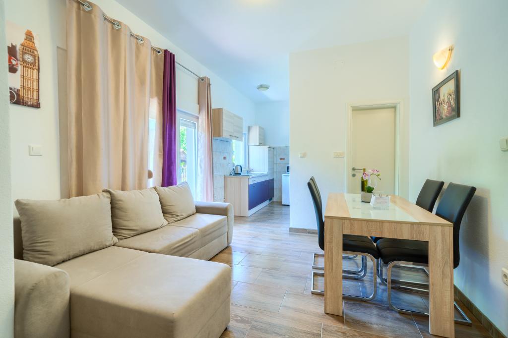 Novi in moderno opremljeni apartmaji v mirnem predelu, oddaljeni 200 m od morja. Nepremičnina se nahaja 5 minut hoje od 3 prodnatih plaž, kavarn, trgovin, restavracij, lekarn, zdravnikov in lekarn. Vse enote so opremljene s klimatsko napravo, TV-jem, jedilnico, kopalnico in teraso. Novi bazen velikosti 8x4 m je na voljo izključno gostom apartmajev.