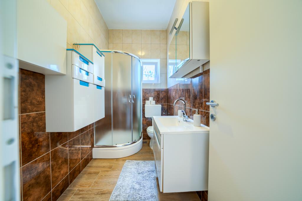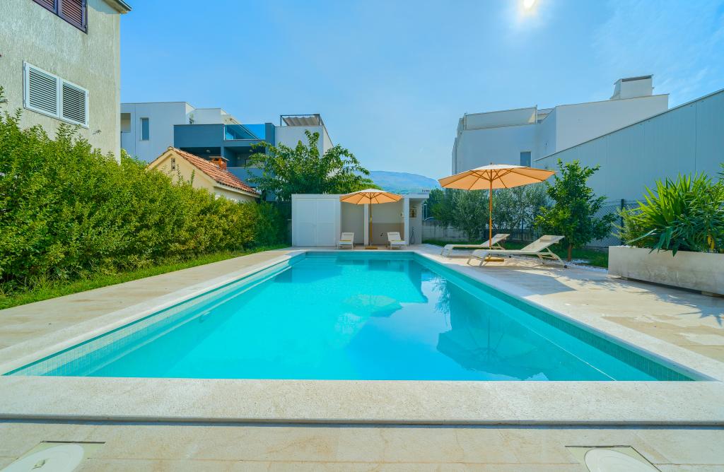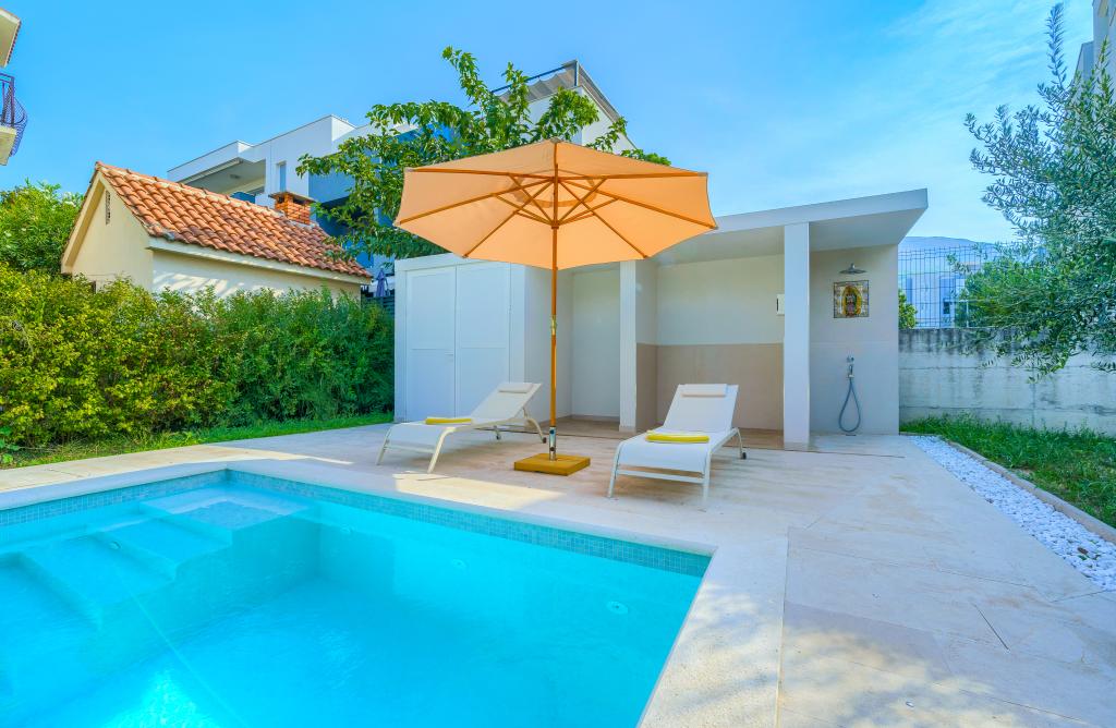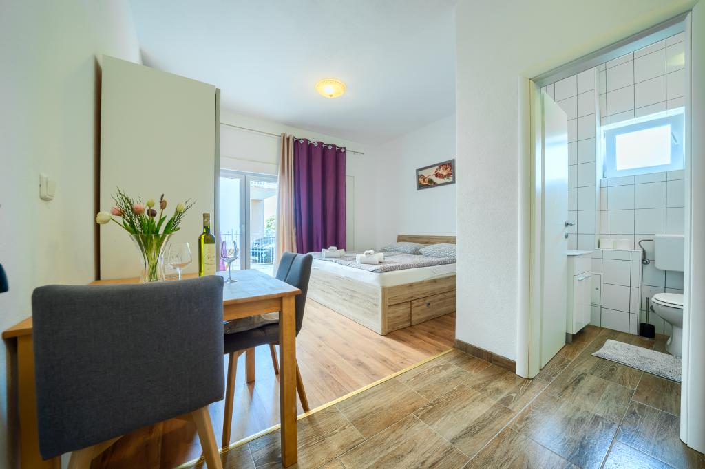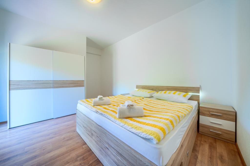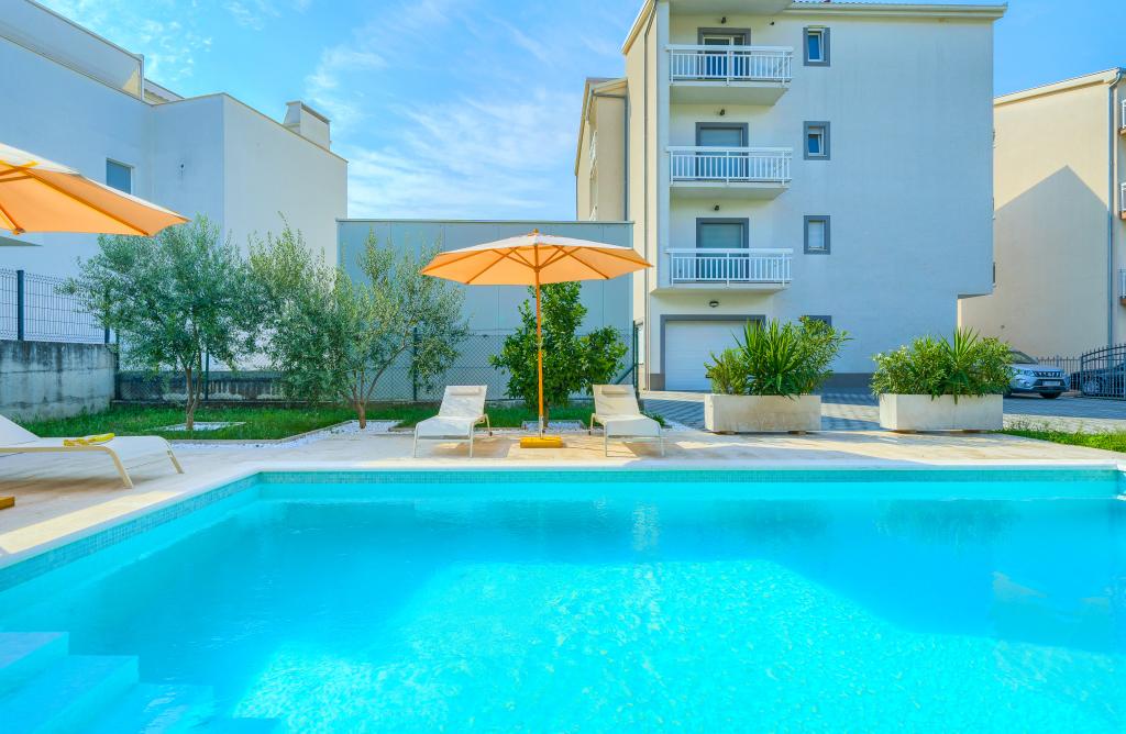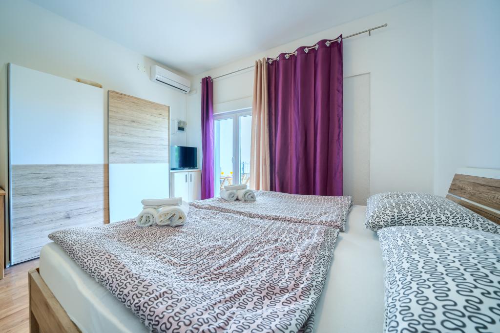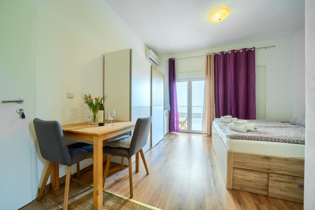 Novi in moderno opremljeni apartmaji v mirnem predelu, oddaljeni 200 m od morja. Nepremičnina se nahaja 5 minut hoje od 3 prodnatih plaž, kavarn, trgovin, restavracij, lekarn, zdravnikov in lekarn. Vse enote so opremljene s klimatsko napravo, TV-jem, jedilnico, kopalnico in teraso. Novi bazen velikosti 8x4 m je na voljo izključno gostom apartmajev.