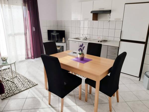 Letoval z otroki 2023. Apartmaji so opremljeni z vsem, kar potrebujete. Blizu plaže. Dobra lokacija. In čudovita gostiteljica.