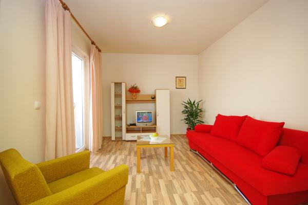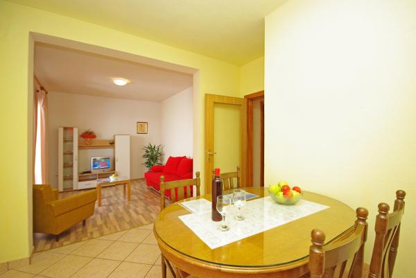 Apartmaji kot tudi celotna stavba Stanovanjska čisto, dobro vzdrževano, lepo Gospodinja skrbi za goste, lahko vedno iti nazaj. Dober kraj za obisk bližnjih mest kot so Omiš, Split in Trogir