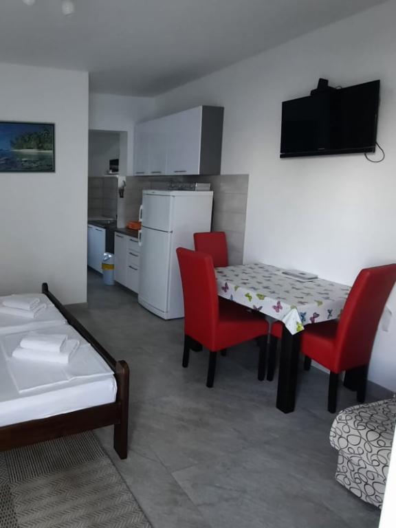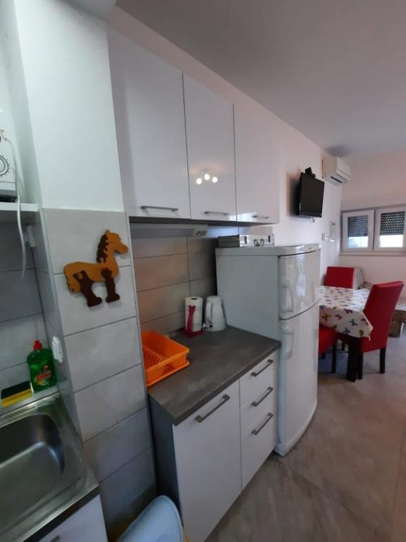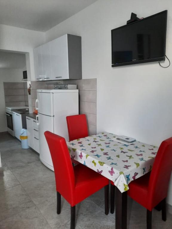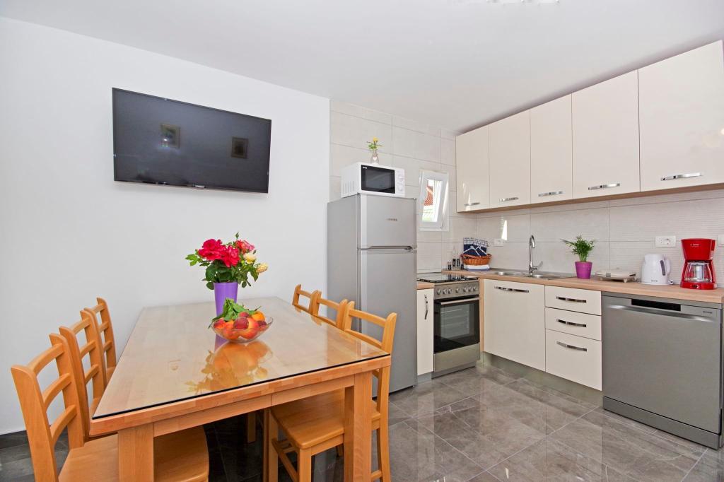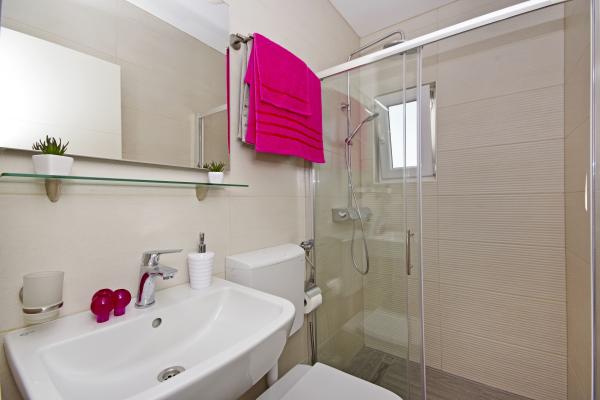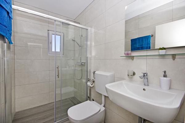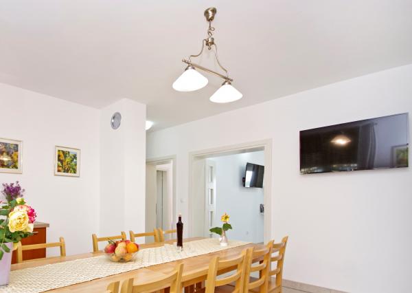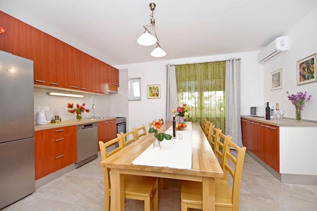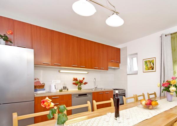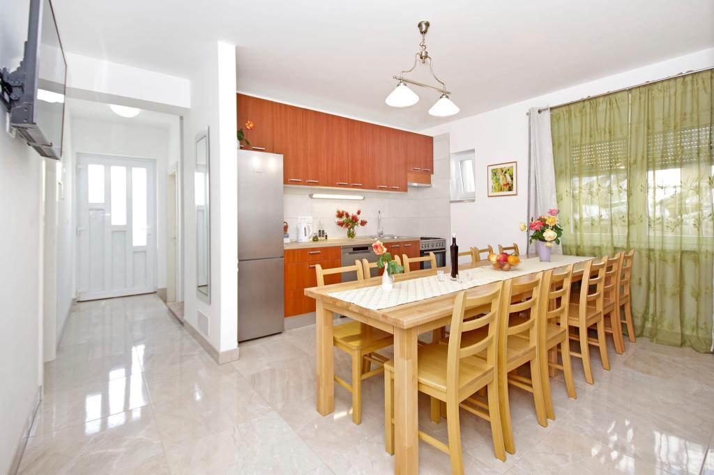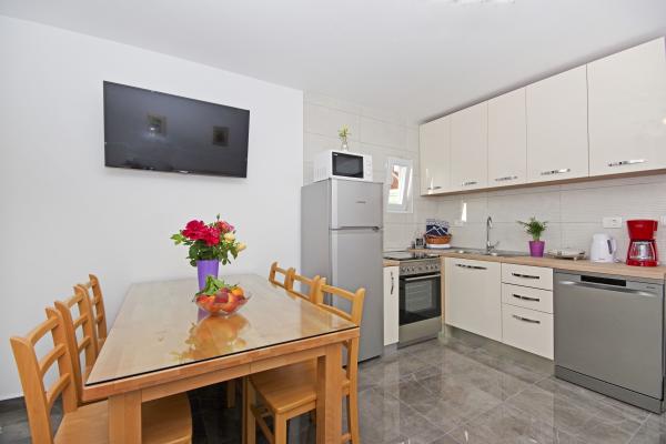 Čudovita čista nastanitev z odlično gostiteljico. Voditeljica je zelo v pomoč in čeprav komunicira v hrvaščini, vedno poskuša vse jasno razložiti. Namestitev lepa, izgleda bolje kot na fotografijah. Imeli smo stanovanje 7 + 2, vsaka soba je imela svojo kopalnico. oprema s tušem. Na terasi žar, trampolin in gugalnice za otroke. Luksuzna nastanitev, v katero se bomo zagotovo še vrnili. Kratek sprehod od morja ...
