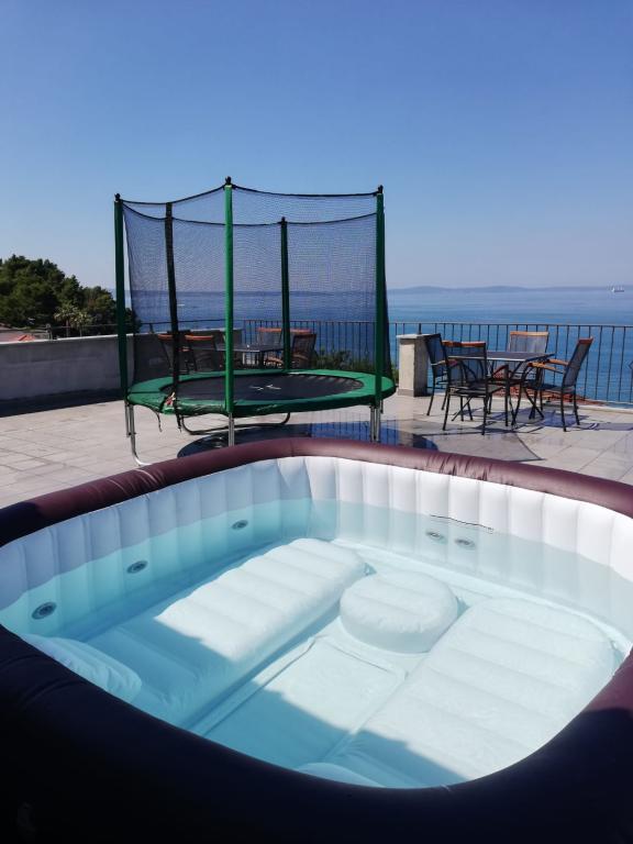 Pravkar smo se vrnili iz Podstrane. Bivali smo v apartmaju 8+2. To je stanovanje urejeno, čisto, lepo, super opremljeno. 3 sobe, vsaka s kopalnico, velika kuhinja opremljena z vsem, kar potrebujete. Velika terasa z žarom in jacuzzijem, v katerem so otroci še posebej uživali. Plaža je dobesedno nekaj korakov stran. Lastnica Ivana je zelo prijazna in ustrežljiva, karkoli potrebuje, tako kot njen brat Mario. Za konec pa pustim prisrčno malo Ivono, hčerko lastnice Ivane, ki je čudovita punčka, naši otroci so jo oboževali in jim je zagotovo polepšala poletne počitnice.
