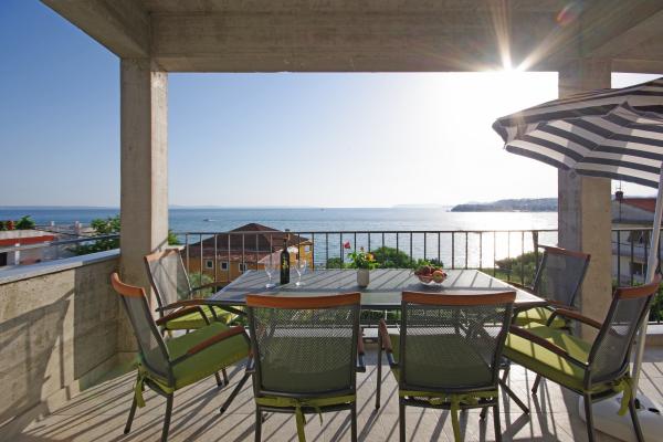 Zelo super stanovanje. Čisto, urejeno, plaža je oddaljena 2 minuti hoje, kjer je mirna plaža (majhen prod, počasi se poglablja) in seveda lep razgled. Ivana je izjemno neposredna, ustrežljiva, prijazna in iz tega se vidi, da goste res sprejme iz srca. Nahaja se na zelo dobri lokaciji, v bližini so trgovine, restavracije in obalni prodajalci, sladoledarne, 2 večji plaži pa sta dosegljivi v nekaj minutah hoje. Počutili smo se preprosto fantastično, zagotovo se bomo še vrnili! Toplo priporočam vsem, bili smo z 2 majhnima otrokoma.