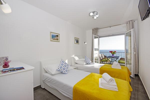Luksuzno veliko čisto stanovanje s čudovitim pogledom na morje. Stanovanje je v celoti opremljeno. V vsaki sobi je klimatska naprava. Ima dve terasi. Ena je notranja, druga pa zunanja. Vsak apartma ima žar in jacuzzi, zunanji tuš, ležalnike. Vsi apartmaji imajo pogled na morje. Strešna terasa ima najlepši razgled. Plaža je blizu 2 min. peš. V bližini plaže je več restavracij. V neposredni bližini so trgovina z živili, lekarna, pekarna... Gostitelja Ivan in Mário sta prijazna, skrbna in zelo gostoljubna. Zdržijo tudi modre z neba. Še vedno sva v stiku. Tukaj smo bili 5x. Leta 2018 smo bili tukaj prvič in se z veseljem vračamo. Tu se počutimo kot doma