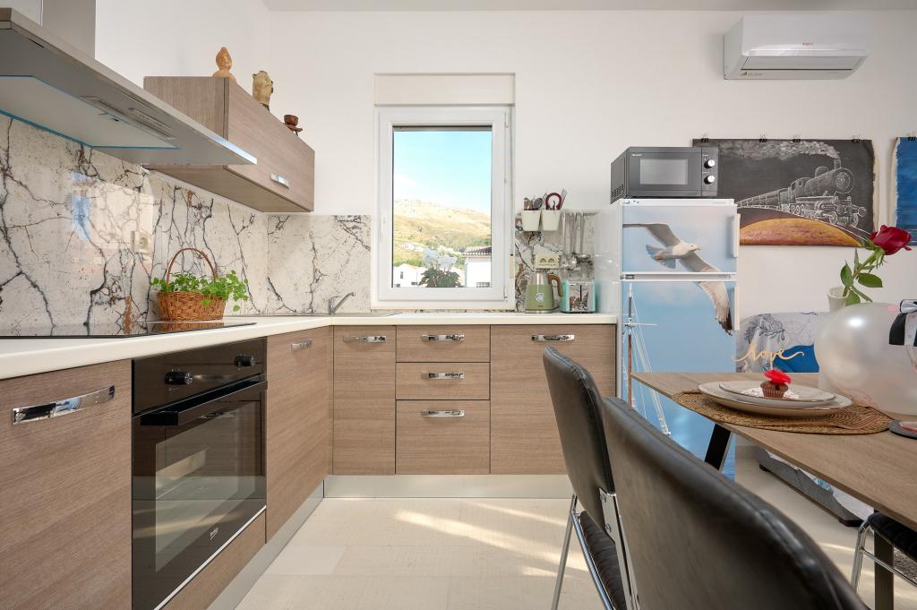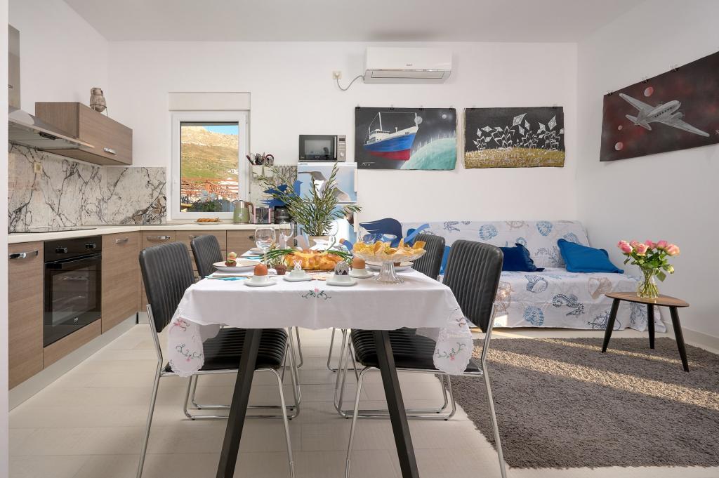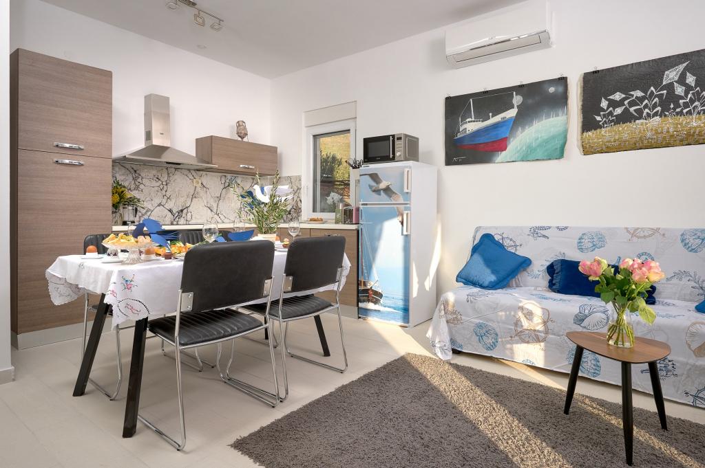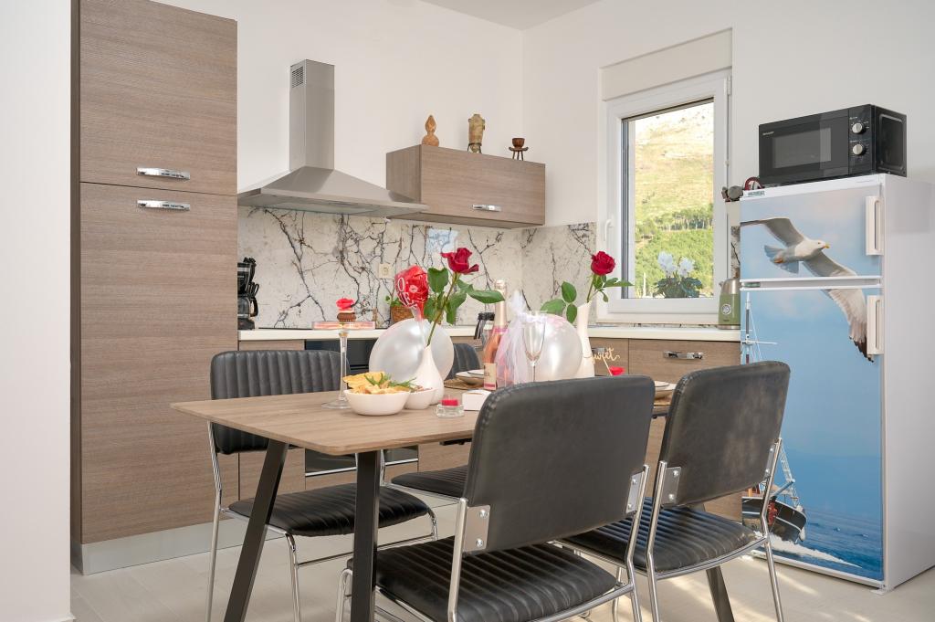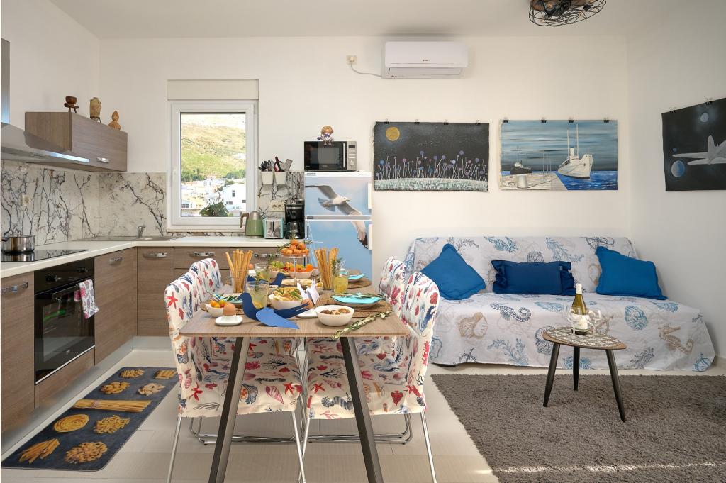 Trije prenovljeni apartmaji "Sita" se nahajajo v Podstrani, tik ob morju. Ta obmorska oaza, ki se ponaša z neokrnjenimi plažami in kristalno čistim morjem, je popolna destinacija za družine in vse tiste, ki iščejo miren pristan v majhnem mestu z vznemirljivostjo in kulturnim bogastvom bližnjega Splita. Vsak od naših apartmajev izžareva zračnost in udobje, saj ponuja dve spalnici, moderno kopalnico, funkcionalno kuhinjo z integrirano dnevno sobo in zasebni balkon s pogledom na morje. Za vaše nemotene počitnice je vsak apartma skrbno zasnovan in opremljen s sodobno opremo: klimatska naprava, WiFi, TV. Parkirišče je v sklopu nepremičnine, medtem ko bližina restavracij, trgovin, prodnatih plaž in športnih igrišč ponuja nešteto možnosti za raziskovanje in aktivnosti.